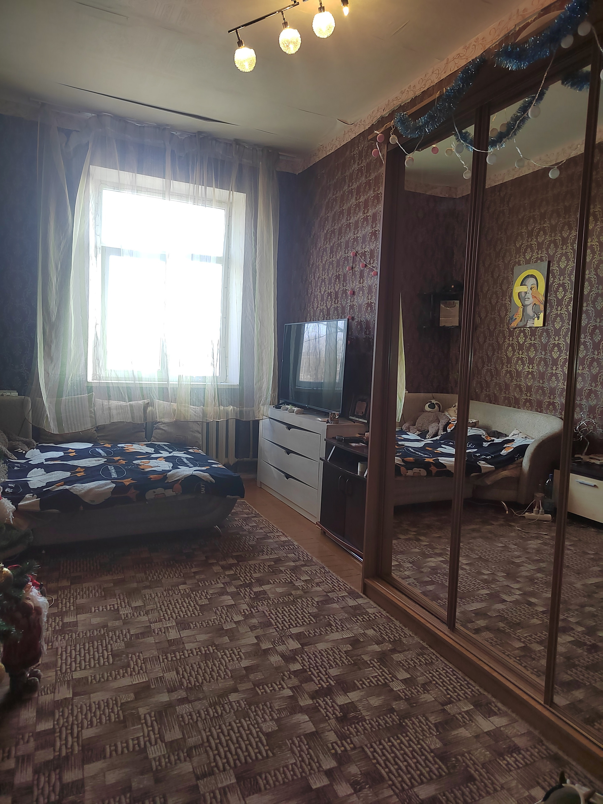 Квартира находится в тихом районе города, городская инфраструктура в шаговой доступности (школа, спортивная площадка, парк, магазин, мфц, остановка общественного транспорта).