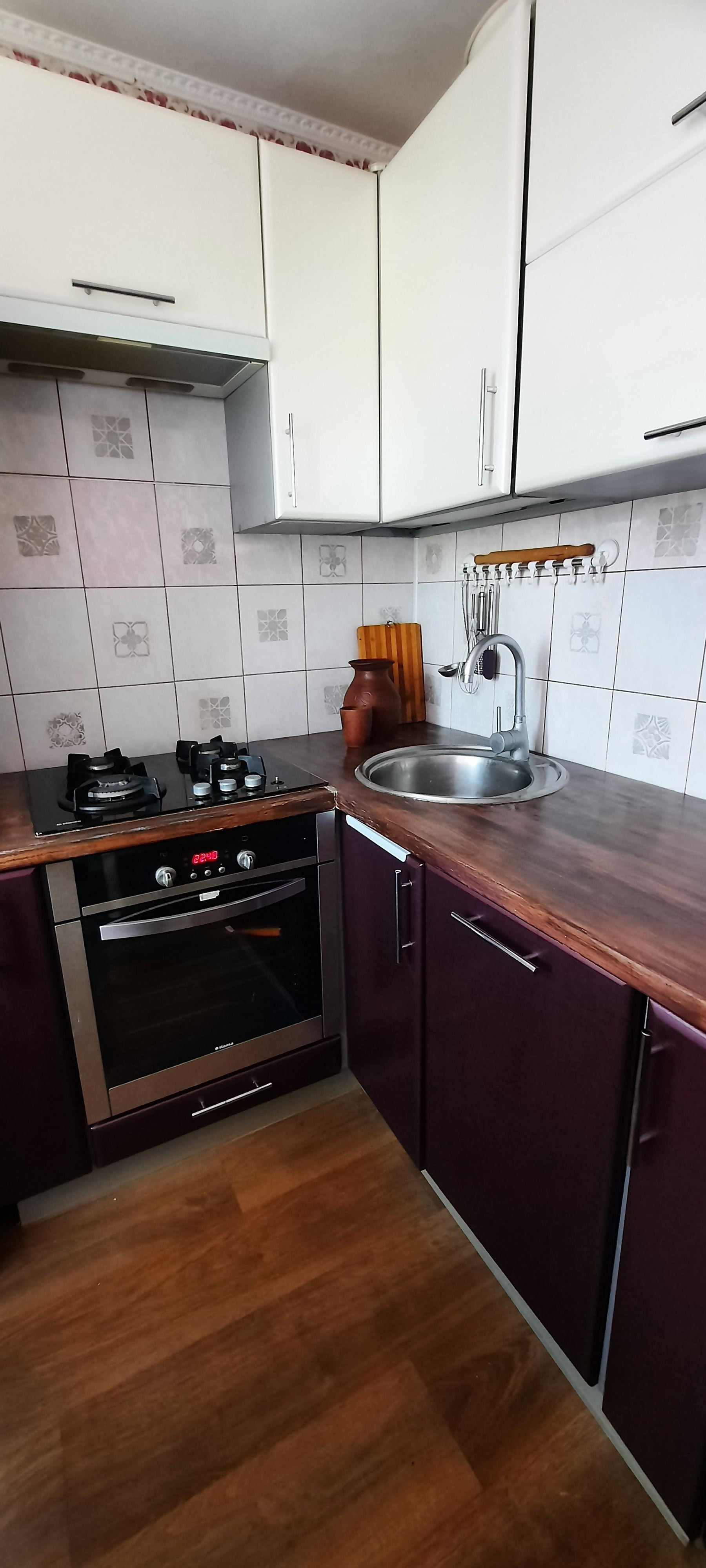 Кухня небольшая, но уютная. Сама кухня встроенная, остается при переезде, также остается холодильник.
