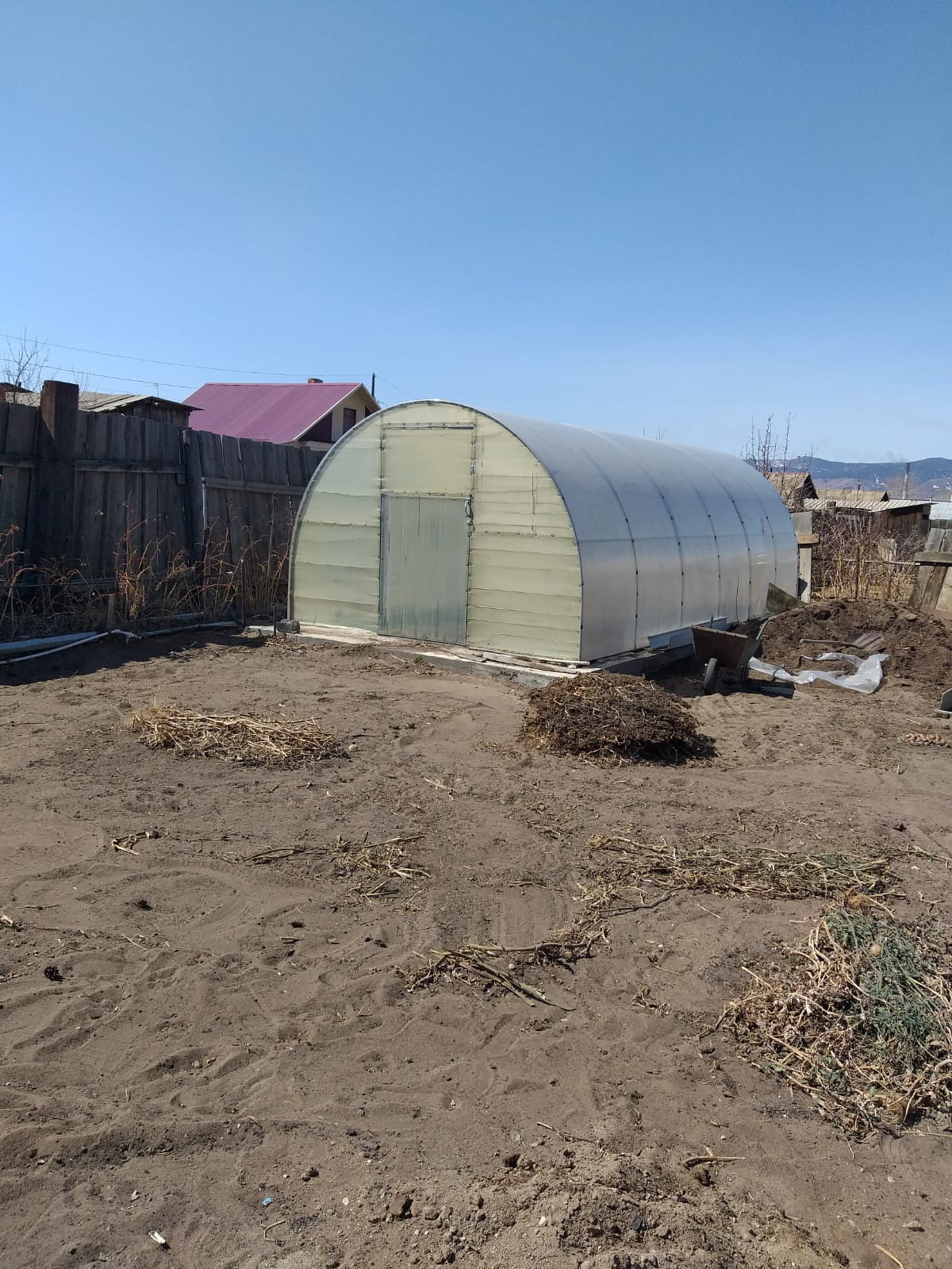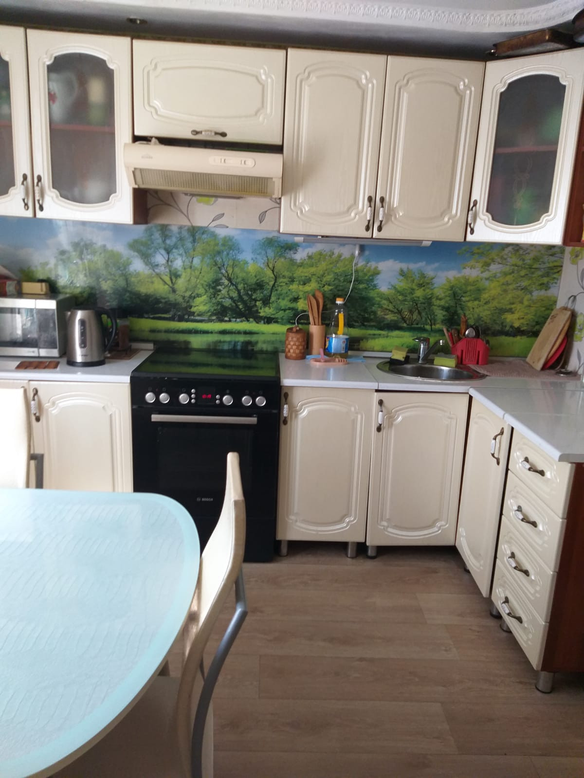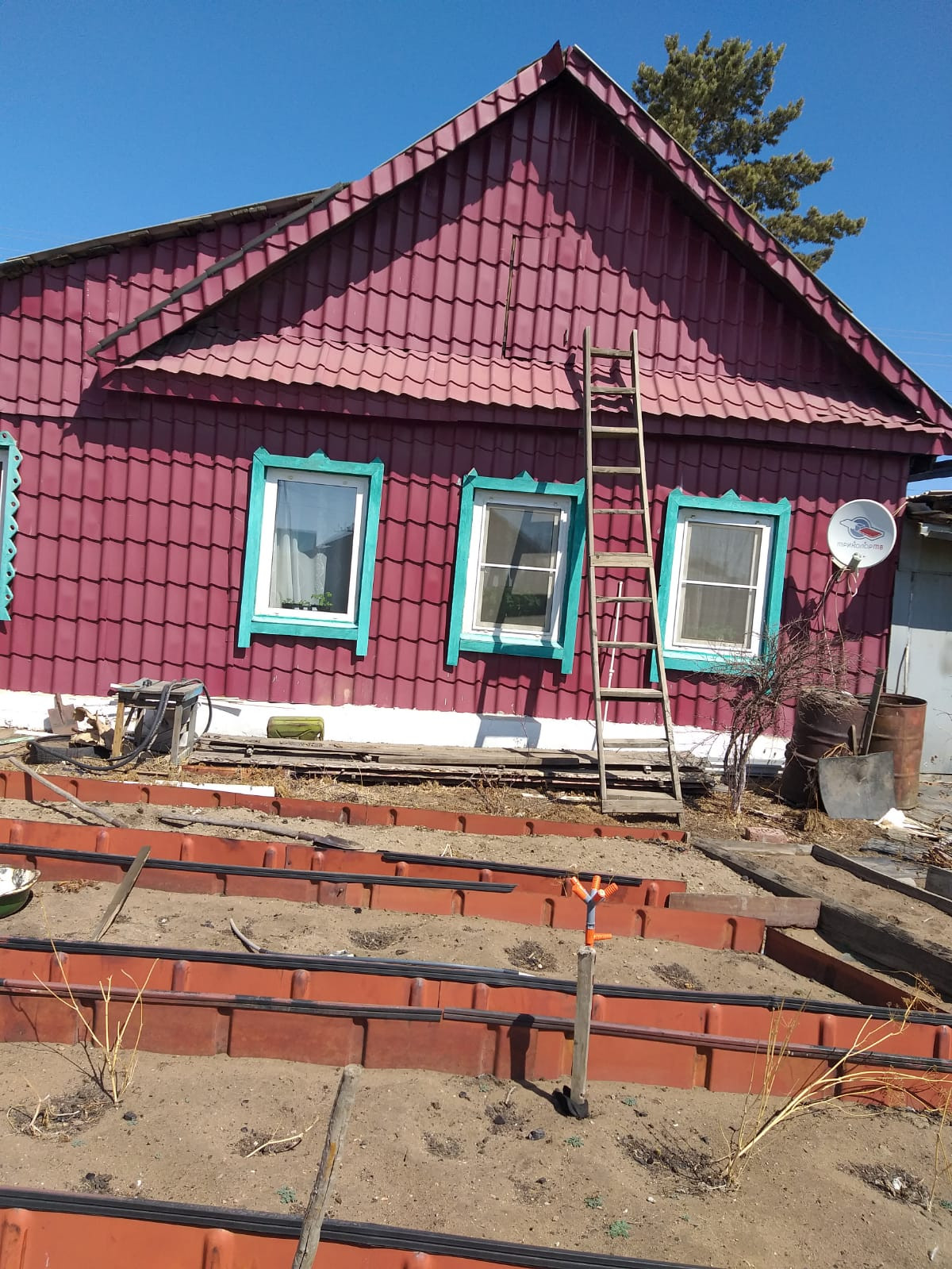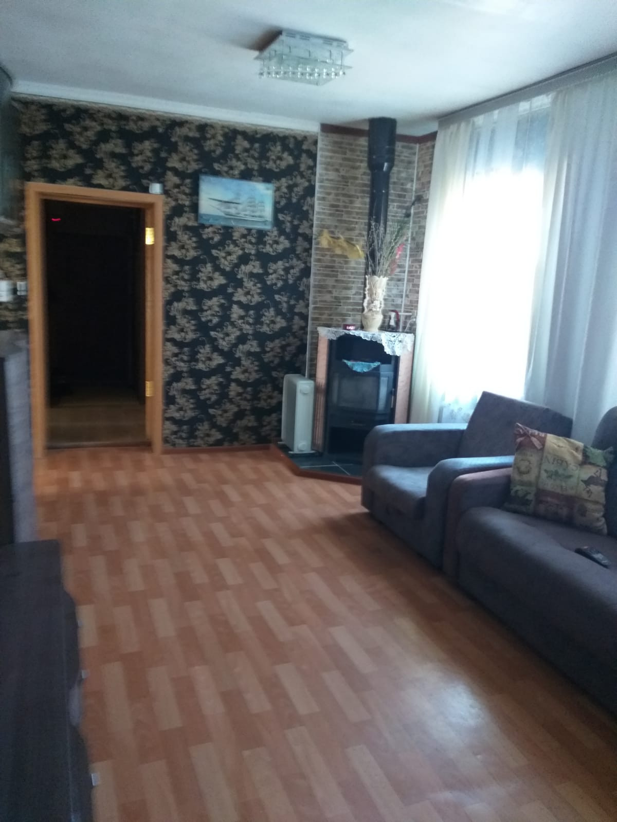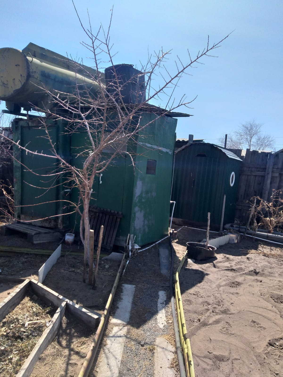 Деревянный дом возле рынка, очень теплый. Имеется камин подключенный к системе отопления если холодно после отключения центрального отопления. Гараж на 2 машины с ямой и еще 1 гараж под маленькую машину. Баня, 2 теплицы, емкость для воды, садовые насаждения.