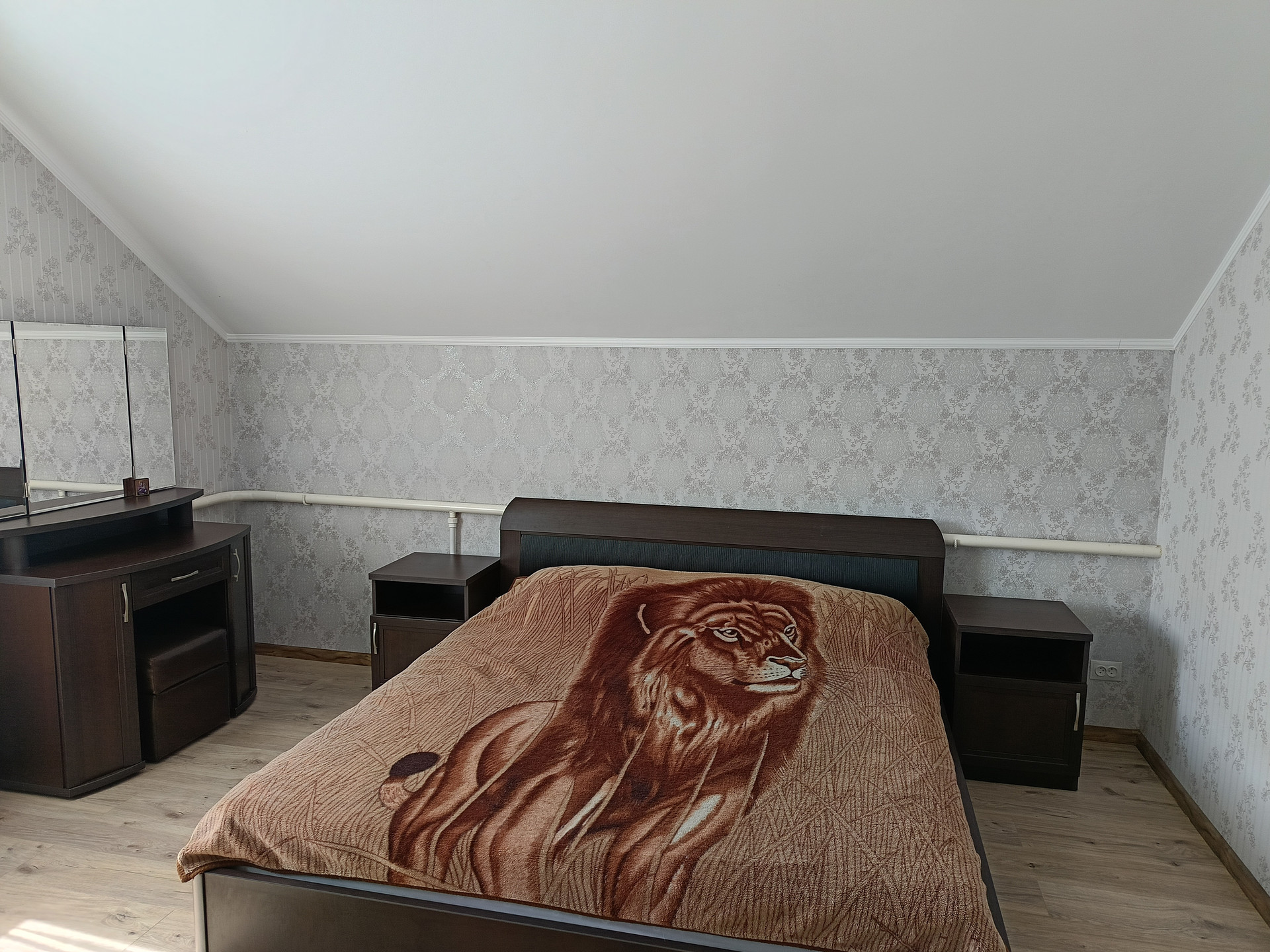 Bтopoй этaж: xoлл, три cпaльни.
