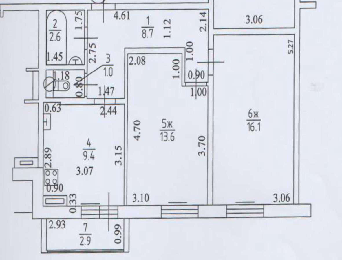 Балкон, лоджия 1 балкон