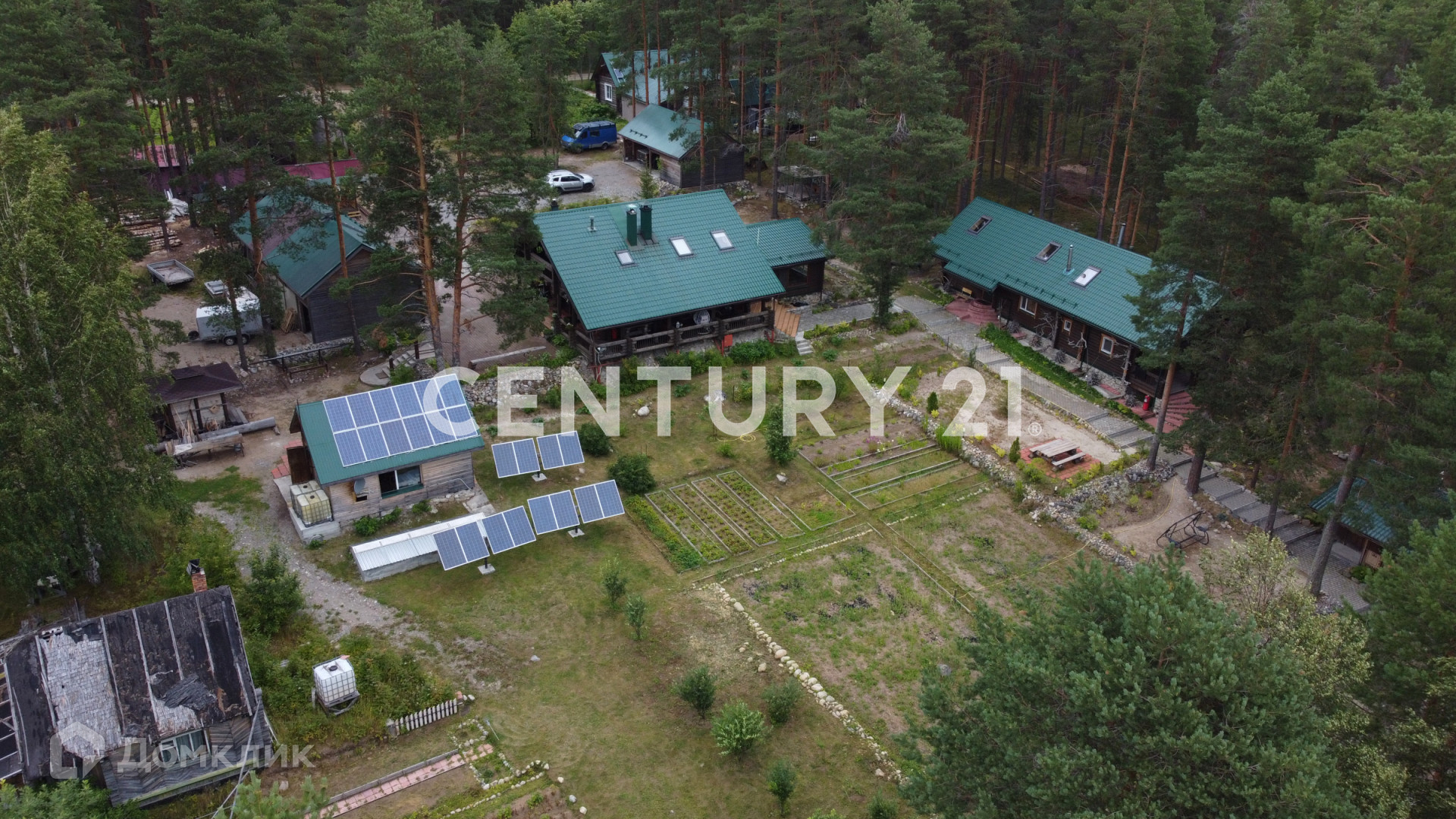 Усадьба состоит из основного 2-х этажного дома с просторной террасой, гостевого дома разделенного на три индивидуальные 2-х этажные секции, банного комплекса, просторного гаражного бокса на 2 автомобиля и мото-техники, хозяйственного блока, собственной котельной и электрической подстанции.