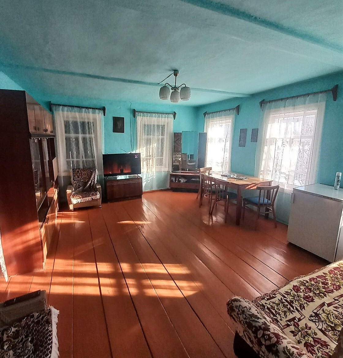 Дом 2х комнатный на фундаменте,общей площадью 53,2 кв.м., земельный участок 6,5 соток. Дом ухоженный, большой, светлый,крепкий.Высокие потолки. Окна деревянные. Центральное водоснабжение. Есть надворные постройки: гараж,летняя кухня,стайки,сарай. Большая веранда,подполье.Ограда забетонированная. Ухоженный огород с плодово-ягодными культурами.