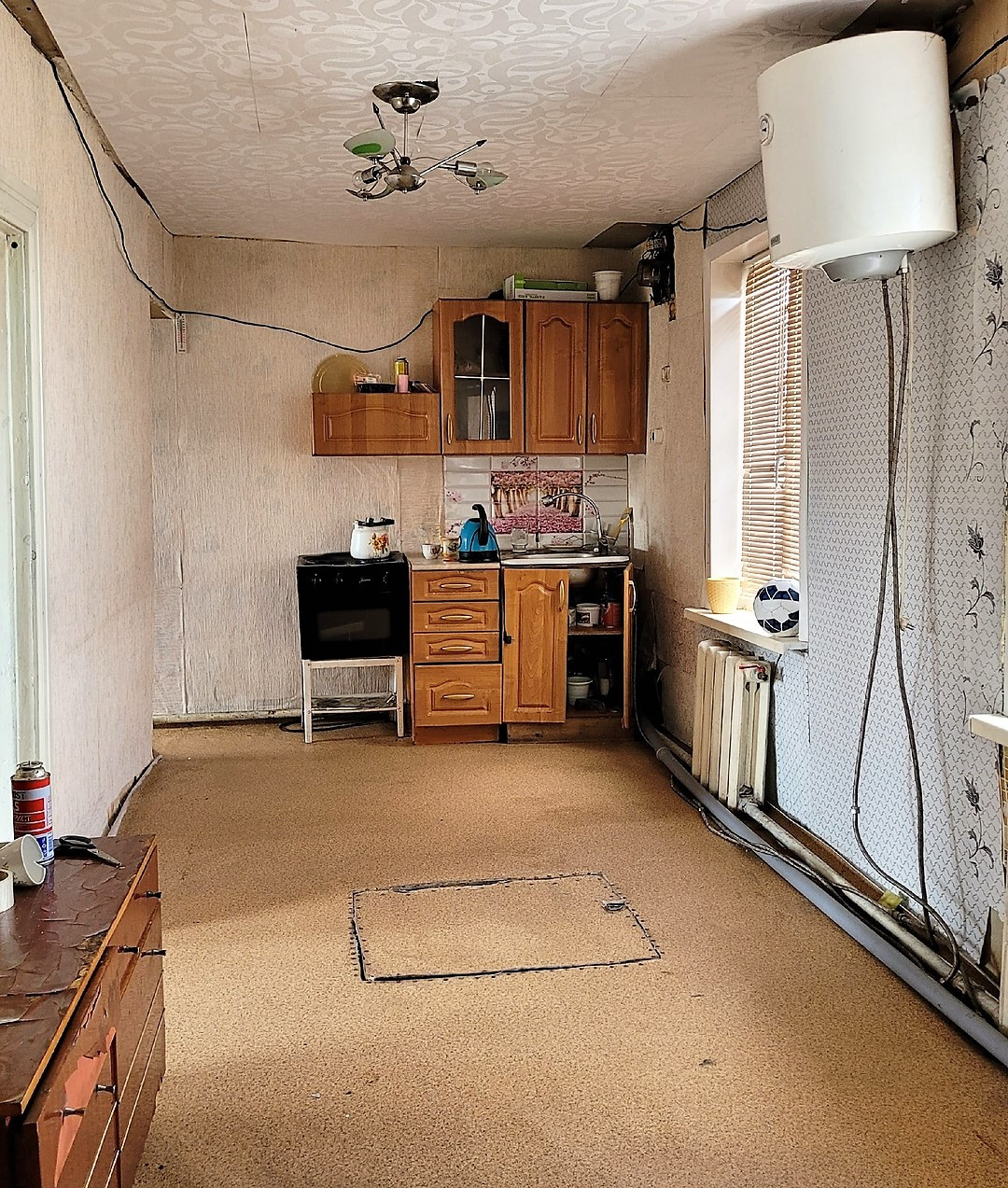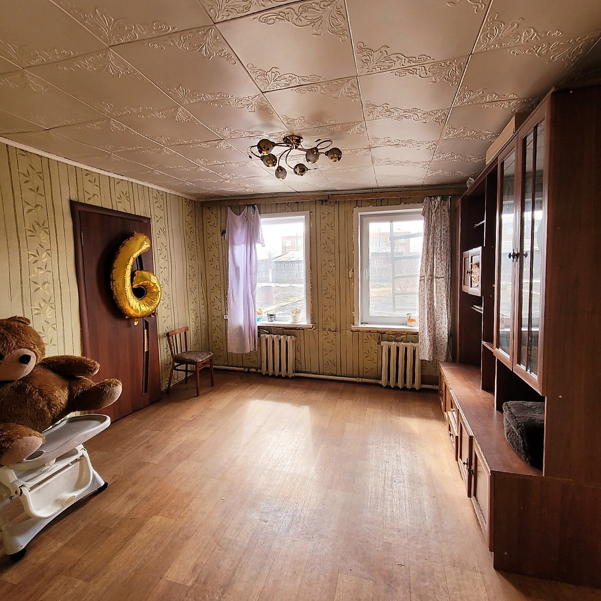 Просторный ,высокий 3х- комнатный дом общей площадью 53,8 кв.м., расположен на земельном  участке площадью 6 соток. Крыша профлист. Окна ПВХ. Водоснабжение и водоотведение. С/у раздельный. Отопление печное-водяное.Имеются надворные постройки (баня, сарай,стайки,гараж для мотоцикла). Подвал и подполье.