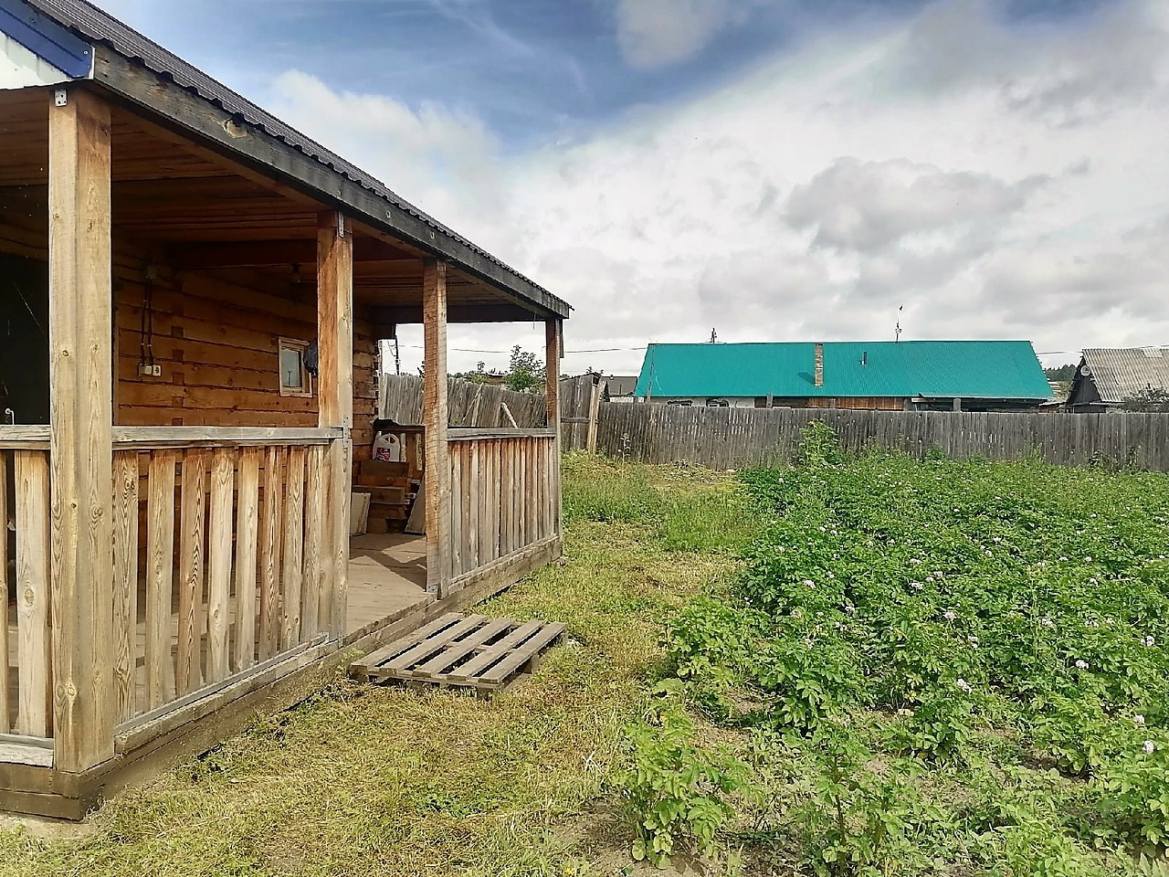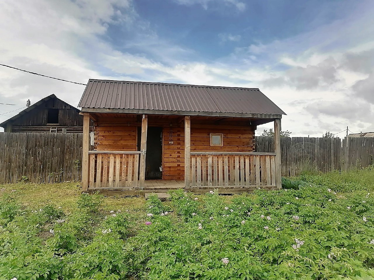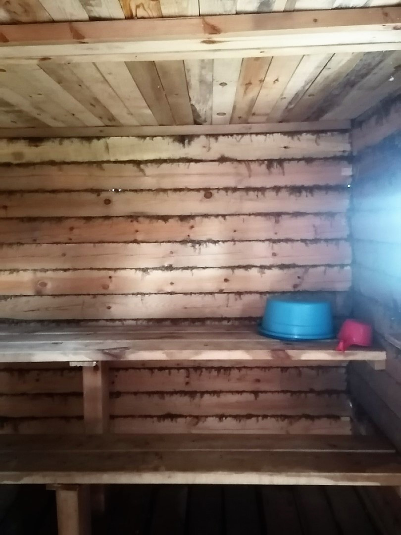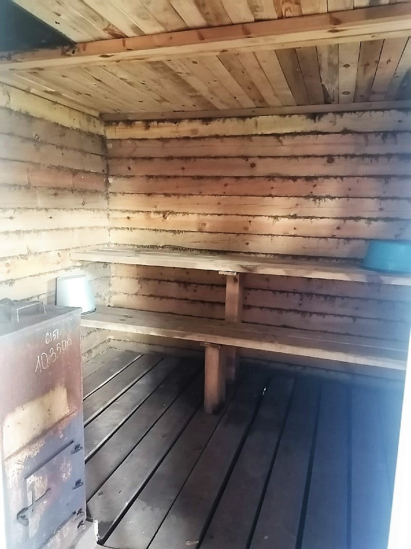 На участке построена брусовая банька с комнатой для отдыха и верандой, размером 5 м.*6м.. Крыша профлист. Проведено электричество. Ухоженный огород.