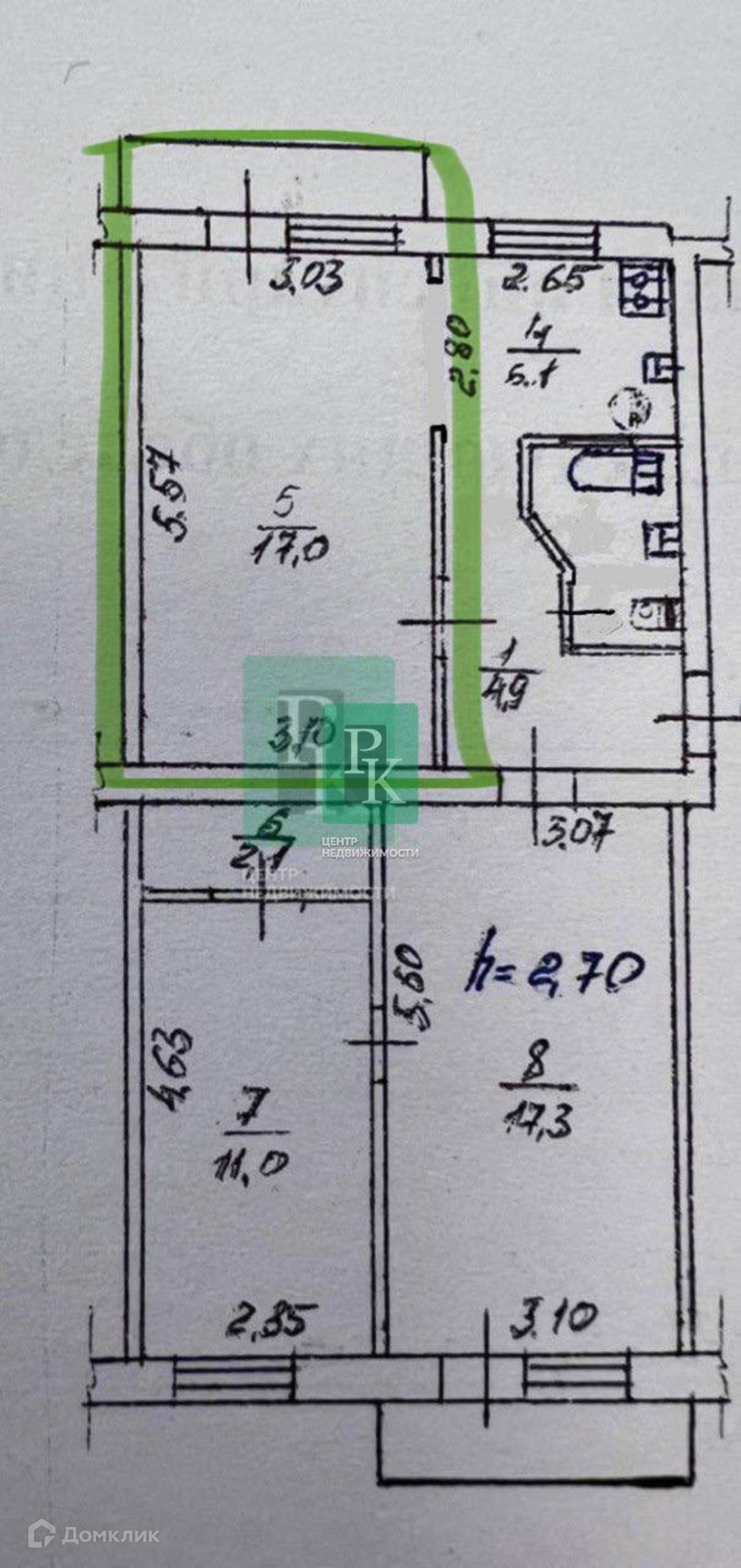 -Высота потолка: 2,8 м