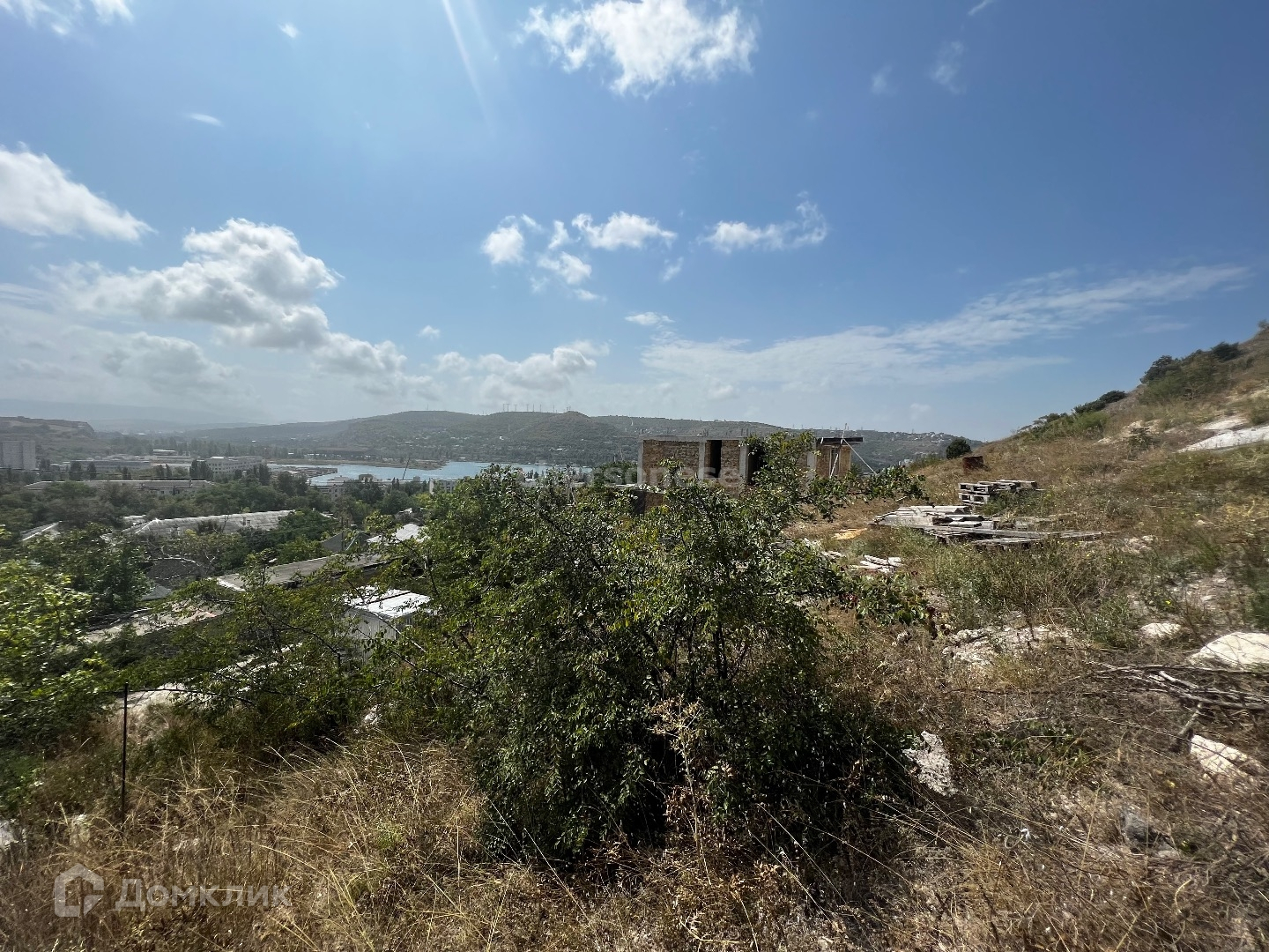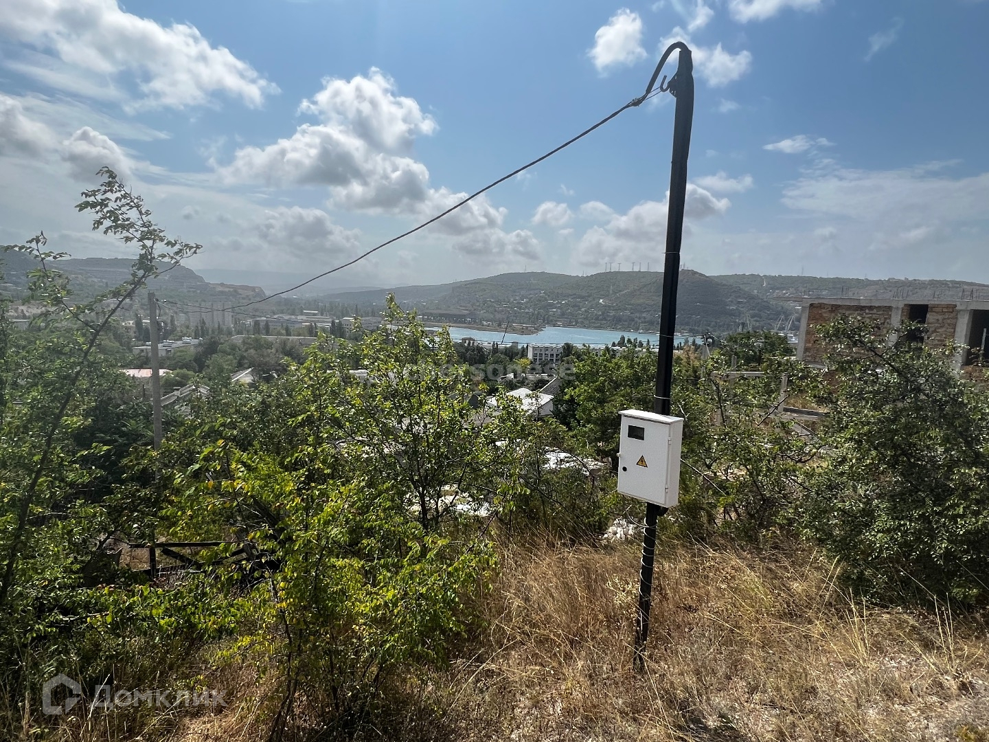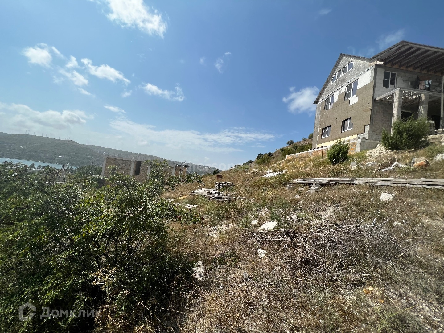 С участка открывается красивый вид на море и горы .
