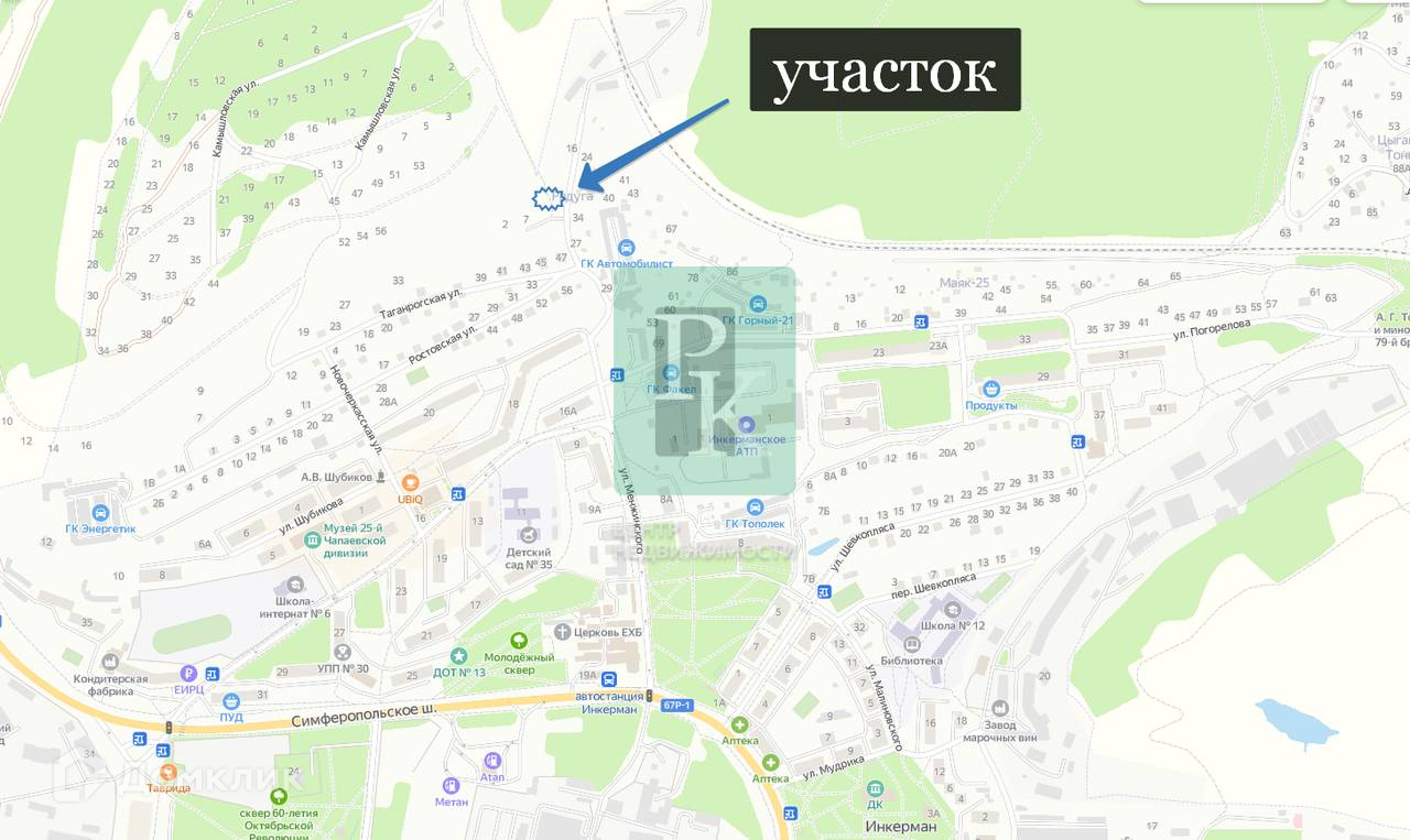 Участок 4 сотки (СТ) расположен в г. Севастополь, г. Инкерман, СНТ “Радуга”. Участок террасированный, есть уклоны. Подъезд асфальтированный.