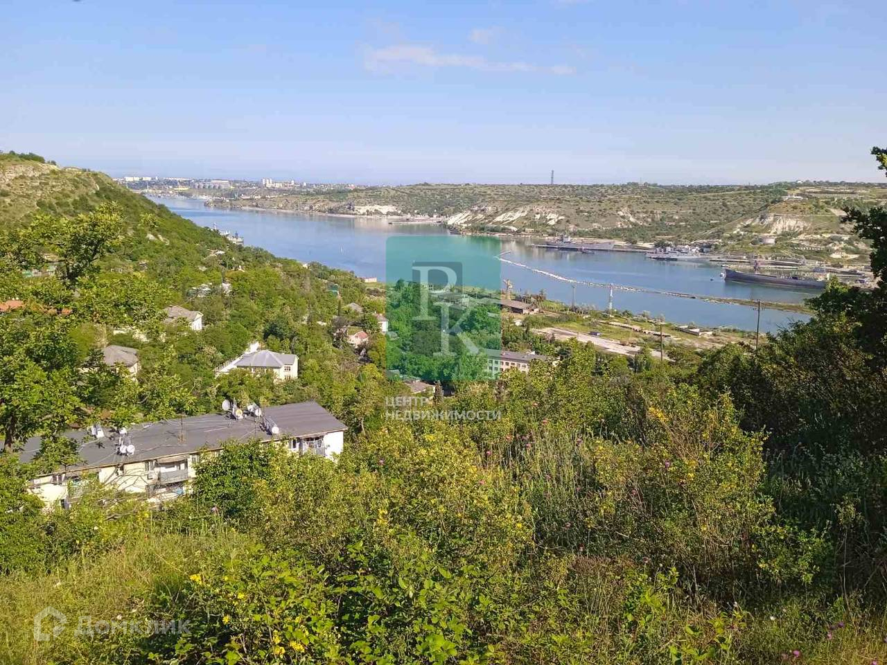 Участок укреплен опорной стеной и выровнен для постройки дома. Благодаря уклону открывается вид на всю Южную бухту. До ближайших соседей 30-50 м.