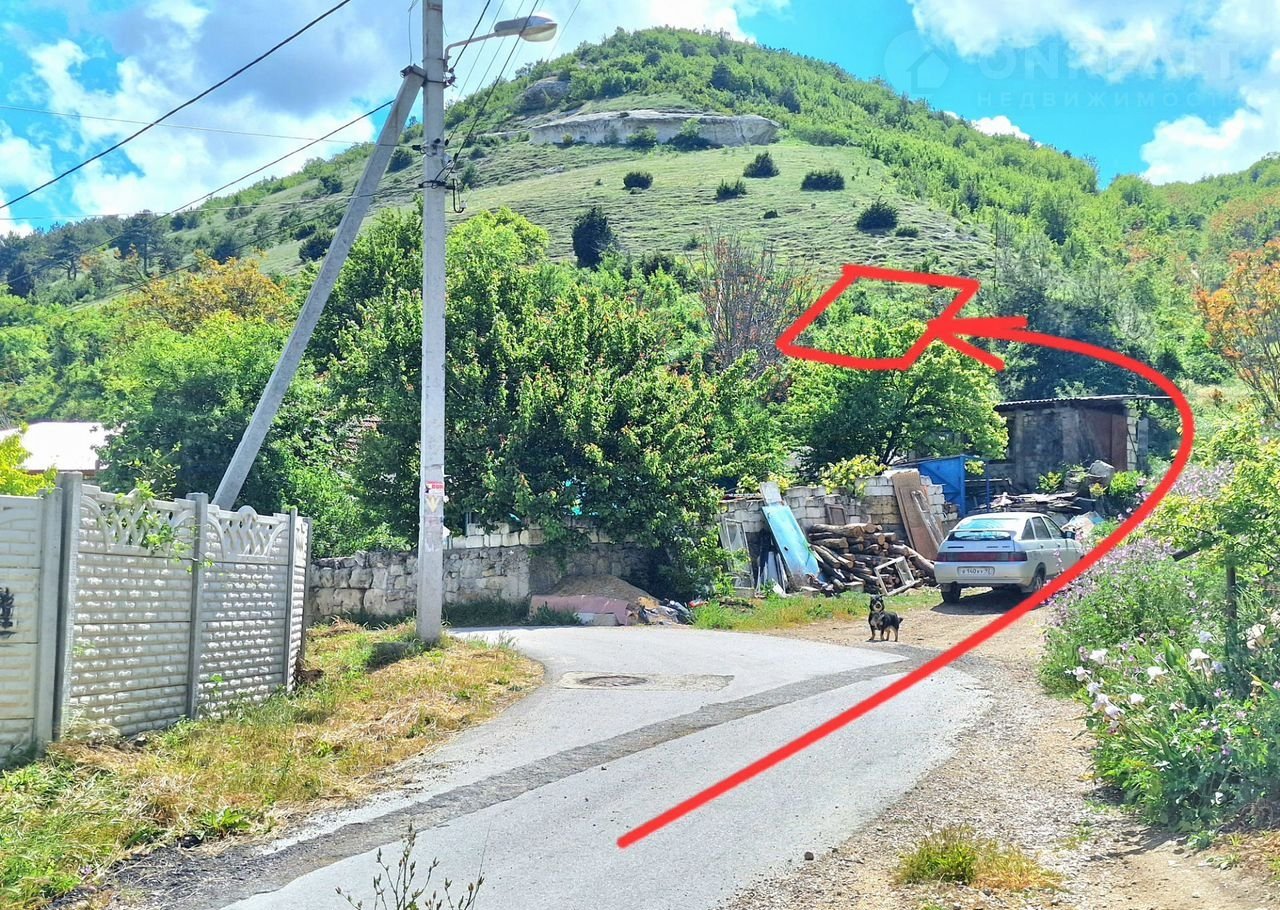 Участок с уклоном, широкой прямоугольной формы 37х29 м, находится среди давно сложившейся жилой застройки. Участок угловой, крайний к горе. Находится на возвышенности. Все соседние участки застроены и расположены ниже.