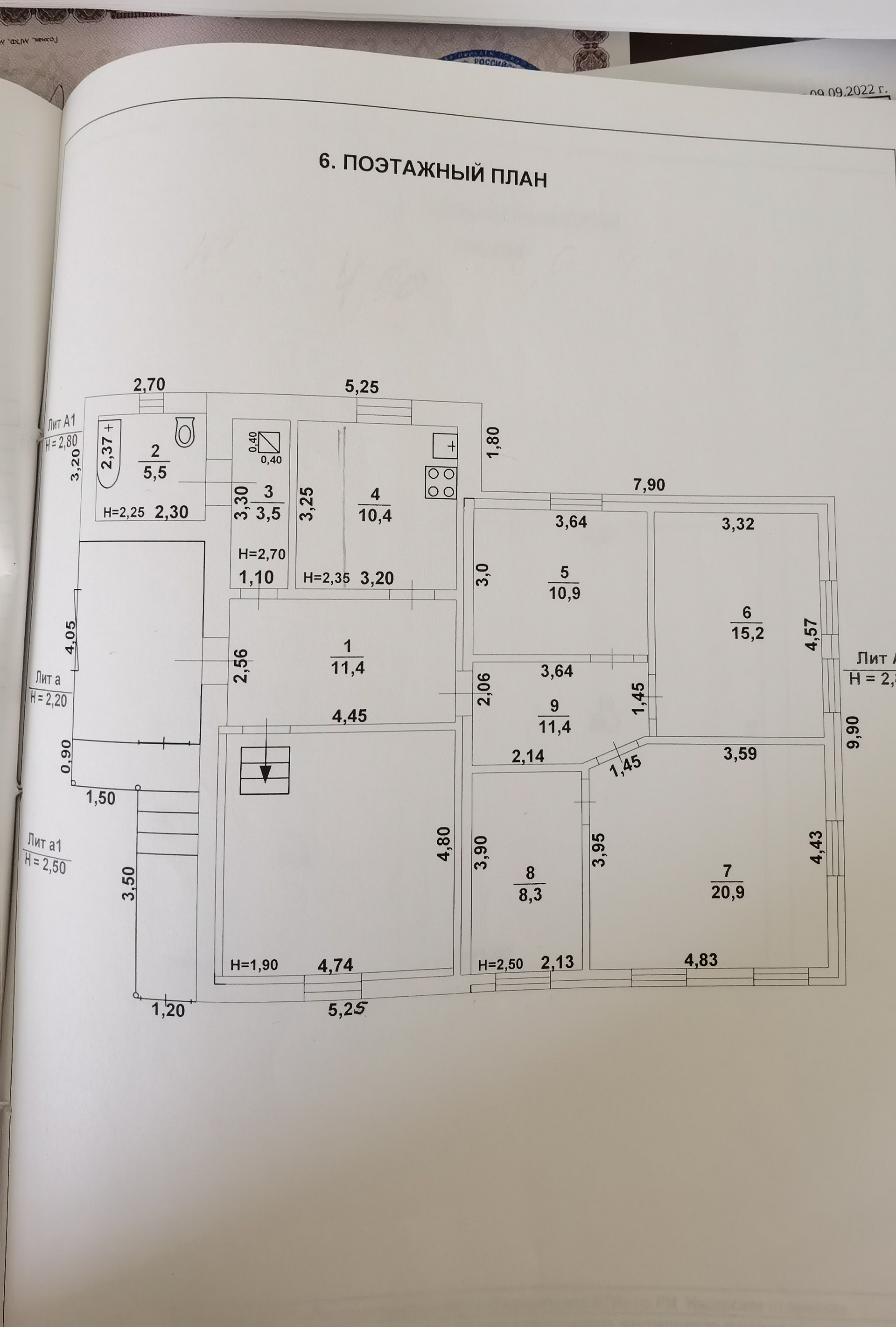В доме 4 жилых комнаты, 2 прихожие, кухня, санузел, веранда, котельная, а также летняя комната 26 кв. м. Есть второй этаж площадью 59 кв. м. (не обустроен). Под домом большой подвал и несколько маленьких.