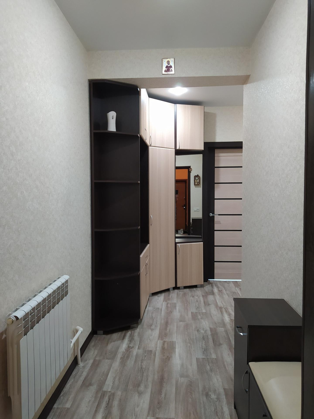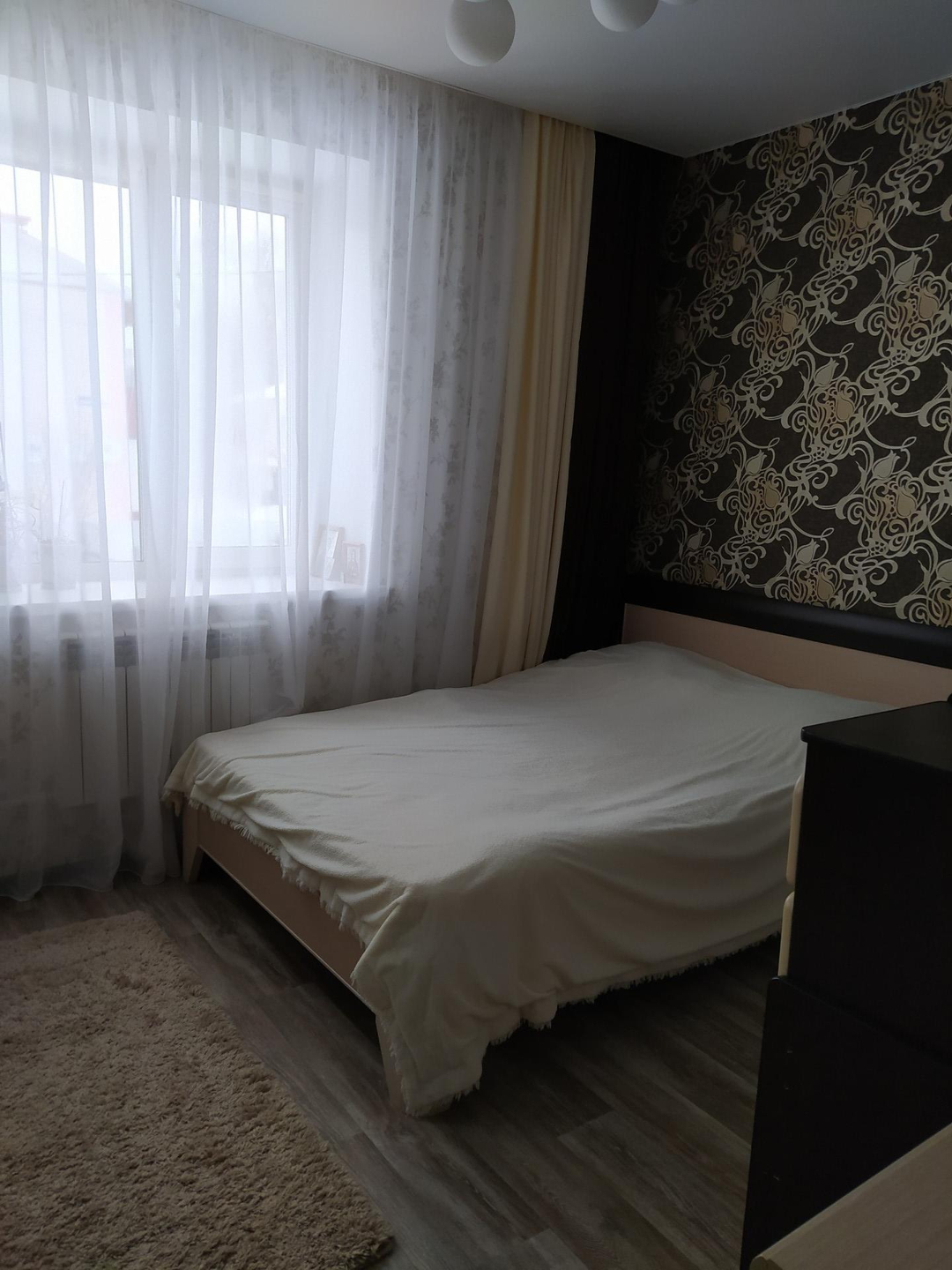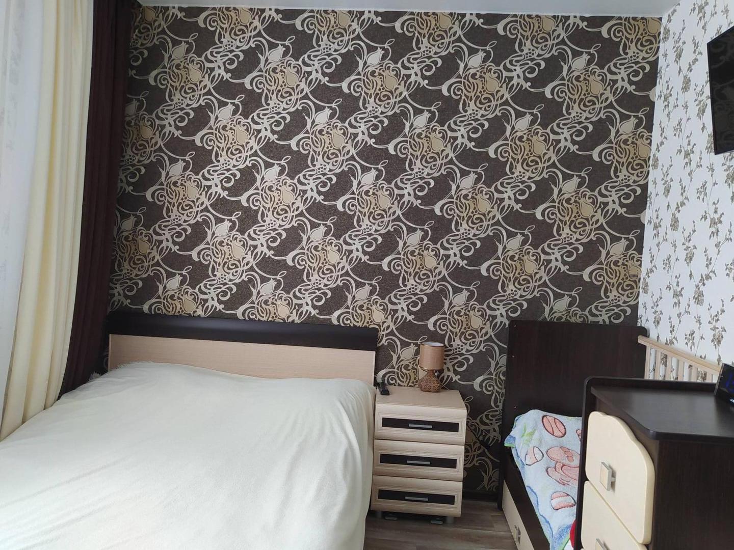 Продаётся уютная квартира в 2-х квартирном доме в спокойном районе. В квартире сделан хороший ремонт, в ванной комнате и туалете тёплые полы, интернет. Горячая вода и индивидуальное газовое отопление (2-х контурный котёл). В квартире 2 спальные комнаты (11,6кв.м. и 12,3 кв.м.), зал, кухня и игровая комната (подходит и для спальной комнаты). В спальной комнате большой и вместительный встроенный шкаф-купе. Имеется огороженный профлистом огород с насаждениями кустарников (смородина, малина, крыжовник), ремонтантной садовой клубники и палисадник с цветами. Двор перекрыт поликарбонатом, поэтому с уборкой снега в снежную зиму проблем нет. Просторный гараж с подъёмными воротами, погребом. Также имеется сарай с рабочей зоной и стеллажами. Центральная канализация. В шаговой доступности парк, школа, детский сад, остановка общественного транспорта и магазины.