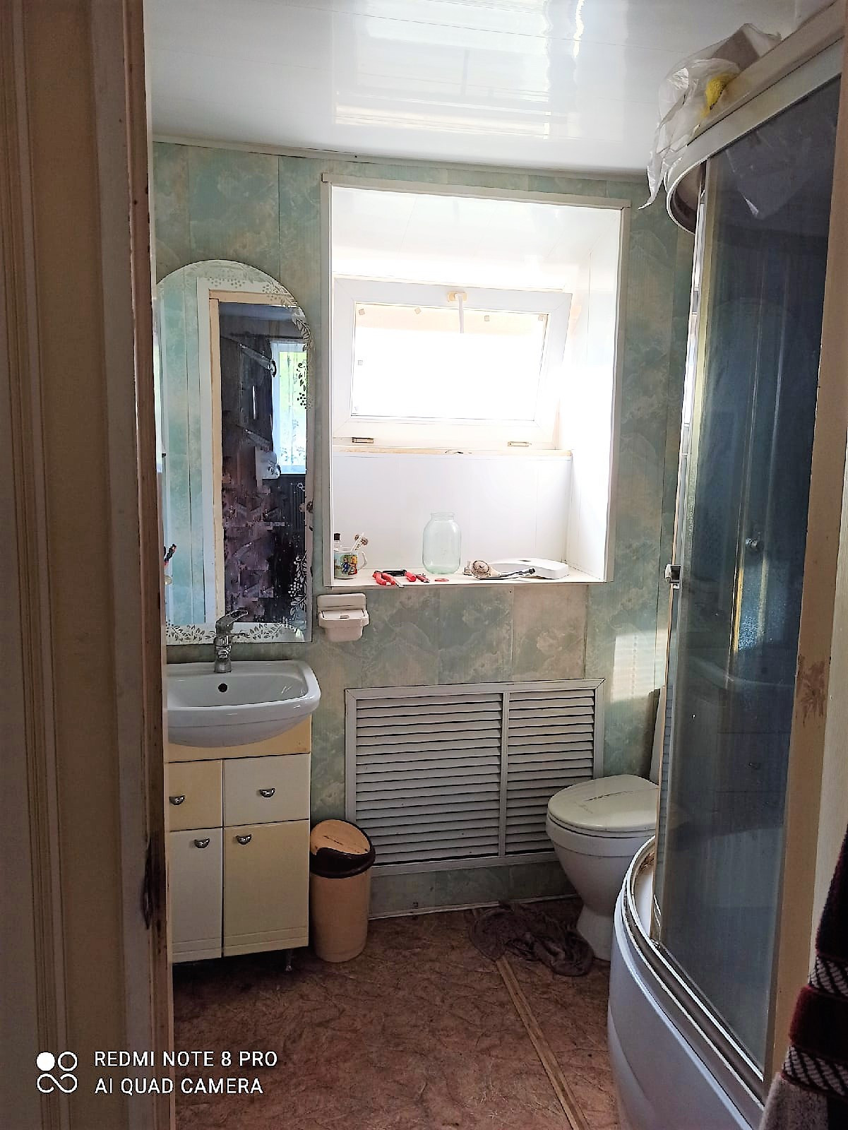 Санузел совмещен, душевая кабинка, титан. Канализация септик.