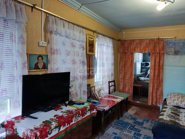 Площадь дома 34,8 кв.м.Состоит из 3 смежных комнат,в одной из комнат выделена маленькая кухонька и сделан туалет.