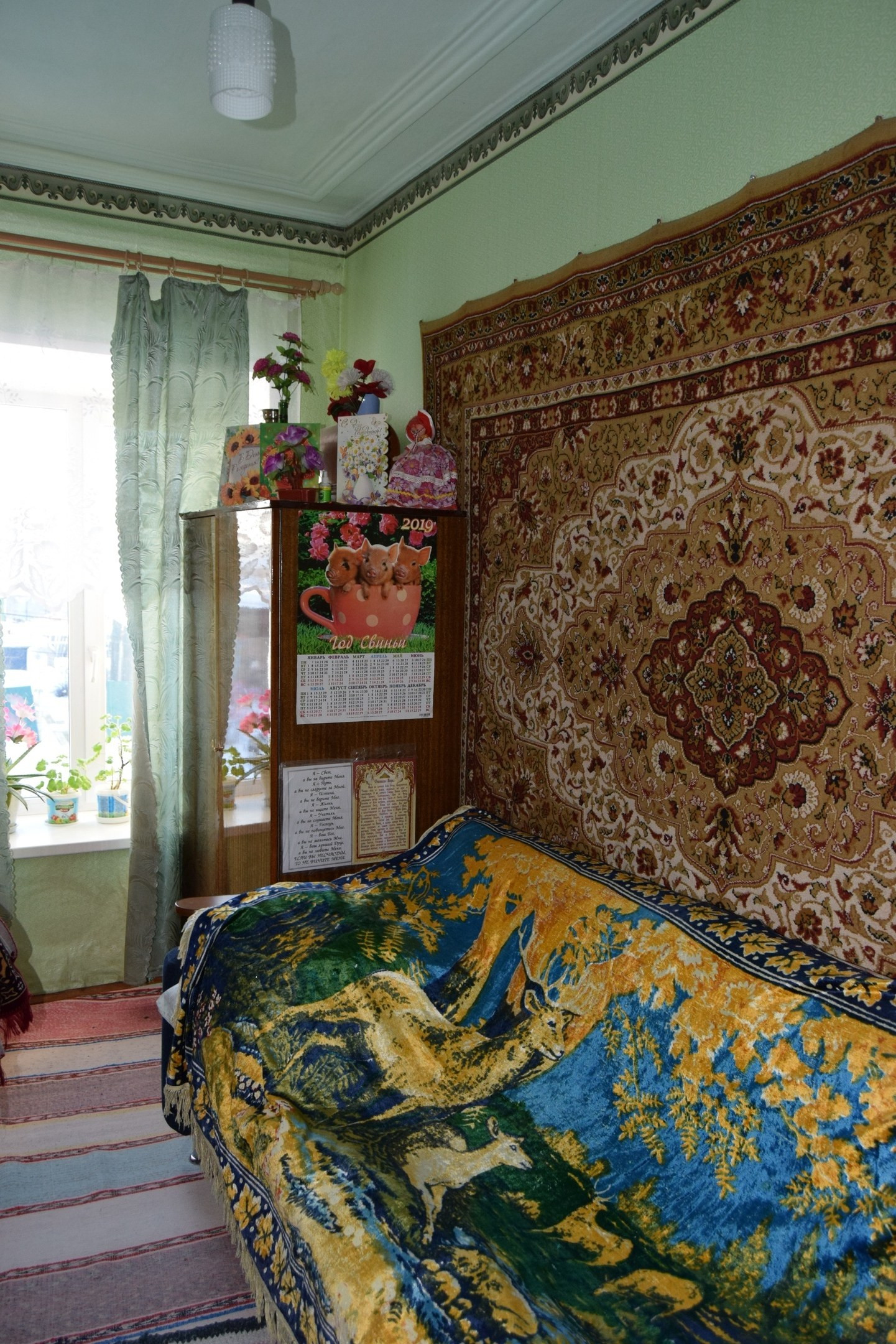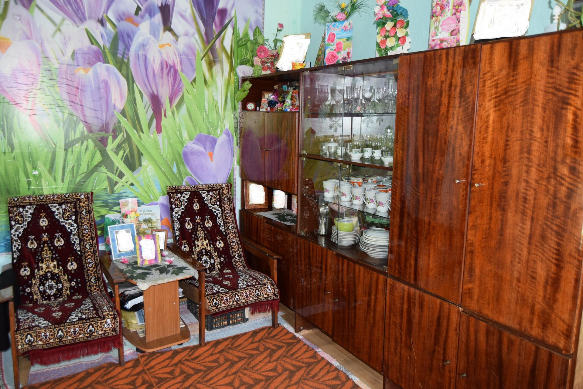 Любимая бабулина квартира, в которую она вложила душу - огромную, чистую, жизнерадостную, как и атмосфера внутри. Всё необходимое для жилья есть: кух. гарнитур, диван, стенка, шкаф, титан, душевая кабинка, шкаф для соленьев-вареньев, картошки, овощей, шторы :)
