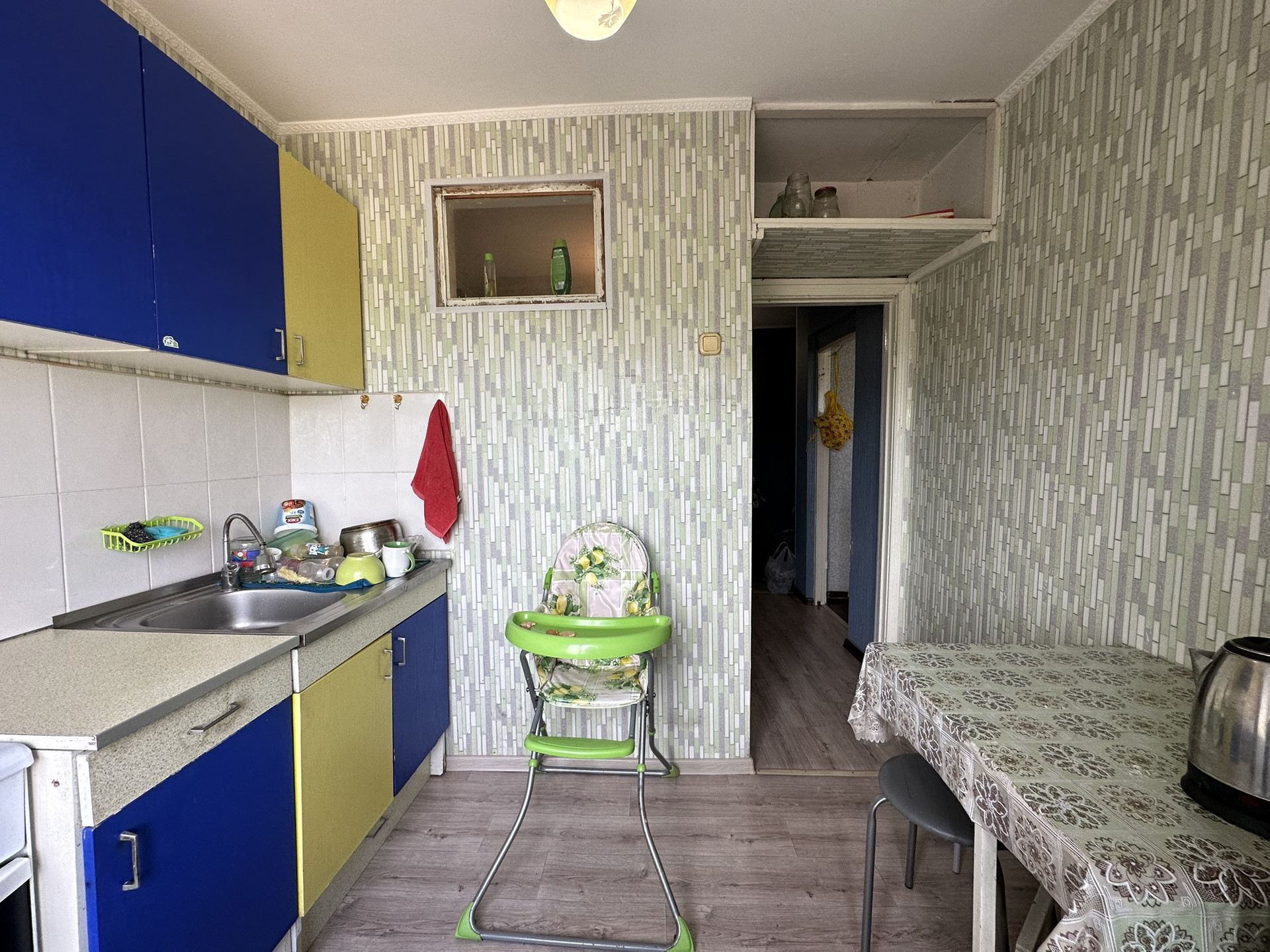. В квартире ремонт от застройщика: на стенах поклеены обои, на полу - линолеум. Сантехника в нормальном состоянии.