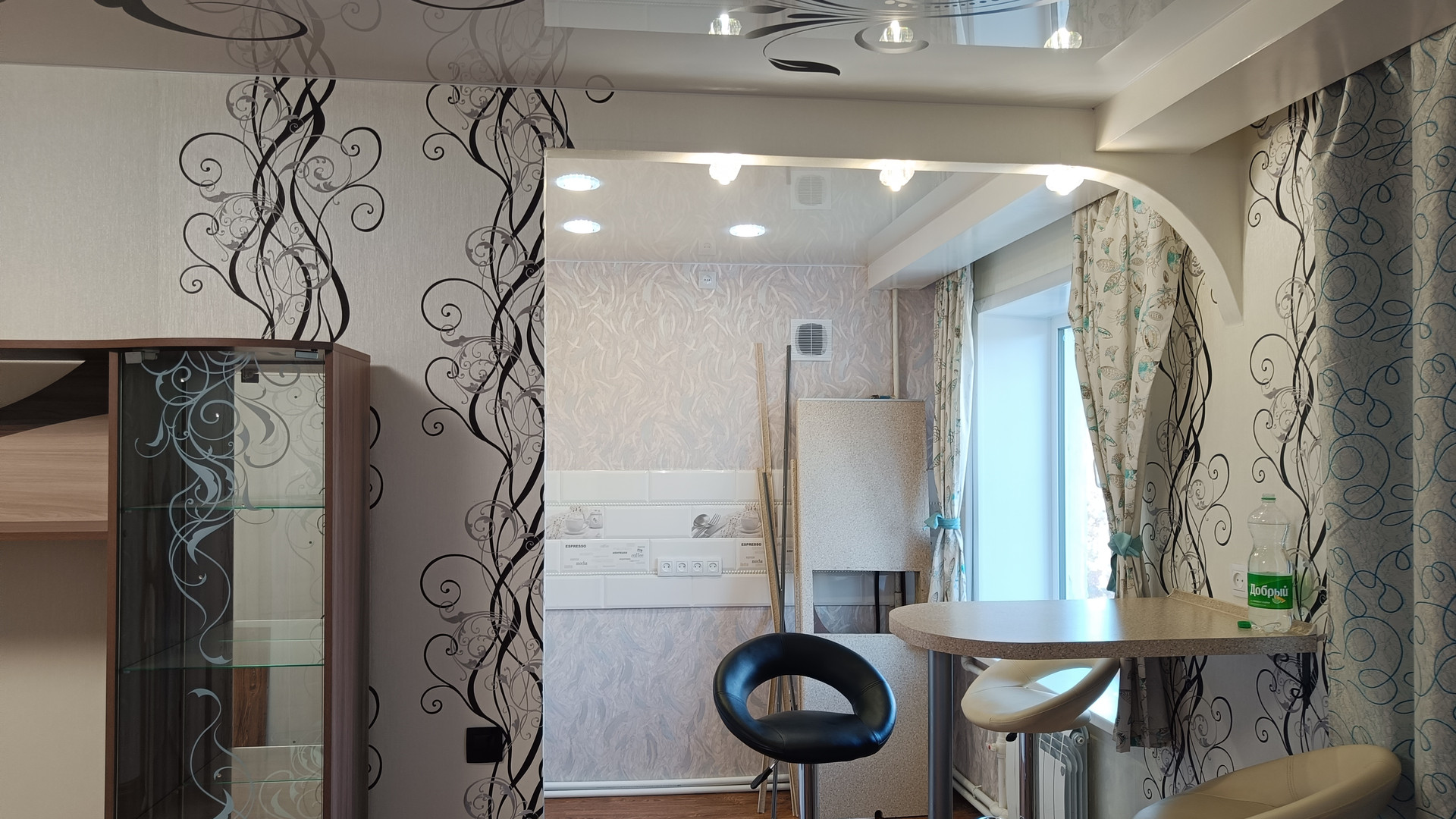 Квартира имеет свежий современный ремонт, с натяжными потолками, пластиковыми окнами и качественными итальянскими ламинатными полами. Сантехника находится в отличном состоянии.