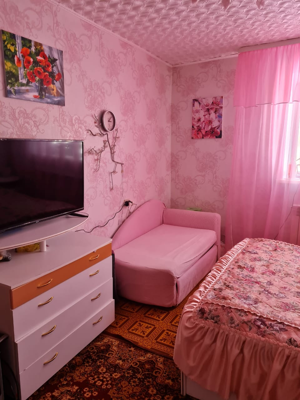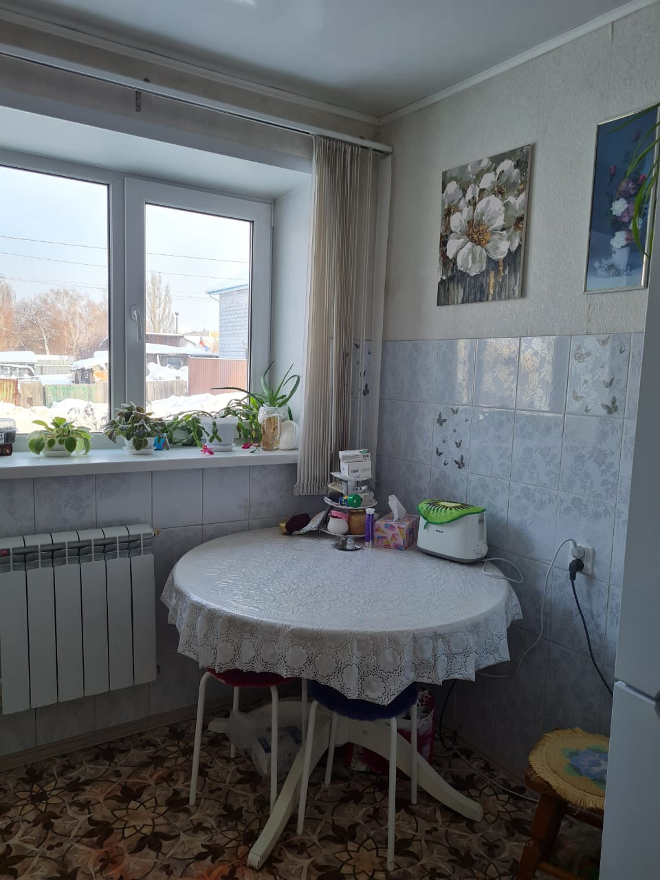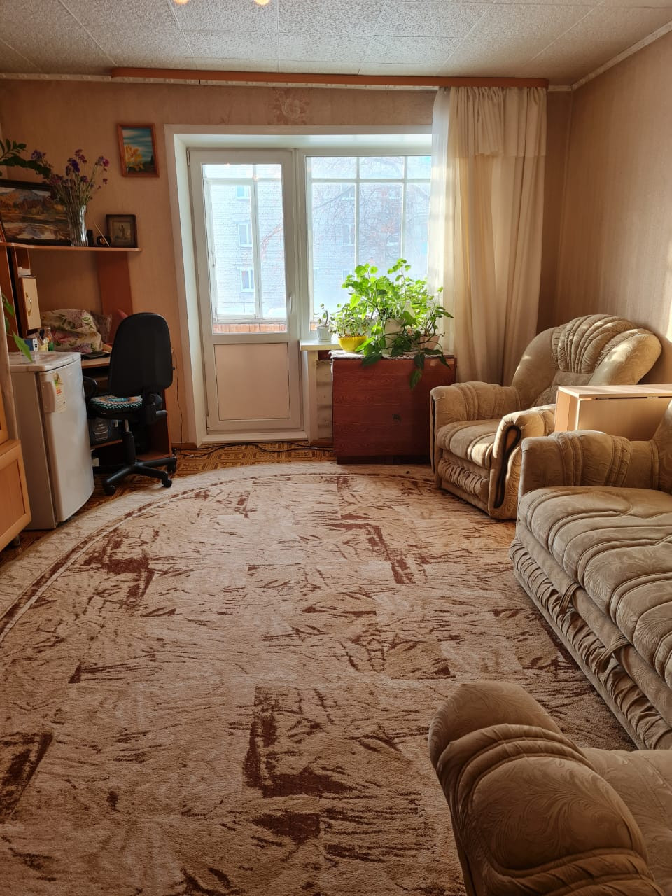 Квартира в пяти этажном доме, 1-й этаж. Дом блочный. Окна выходят во двор и на улицу, во дворе имеется парковка, детская площадка. Рядом находятся магазины, детский сад, две школы, почтовое отделение. Дом распложен в центре города.