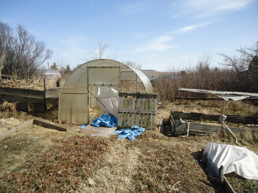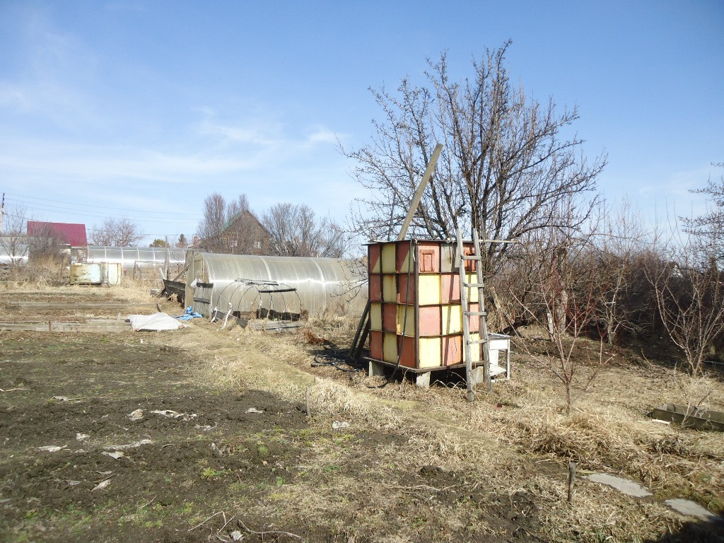 Есть насаждения и теплица из сотового поликарбоната, парник.