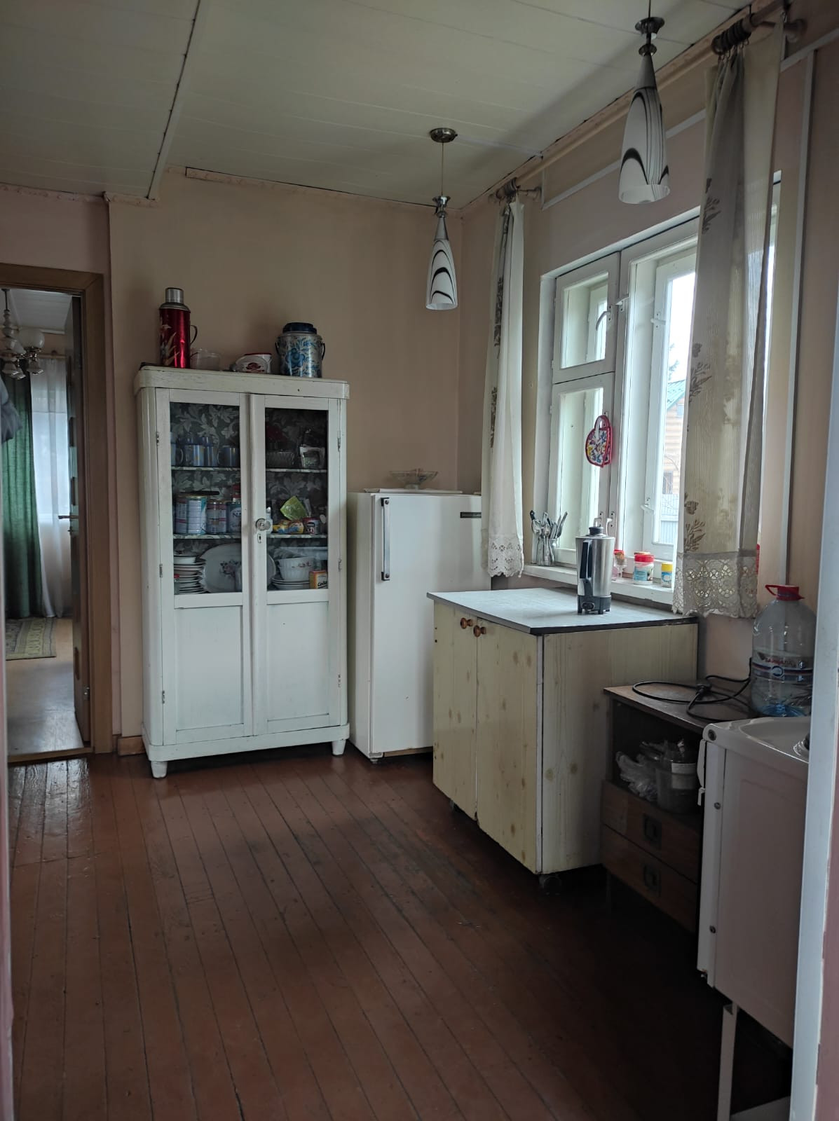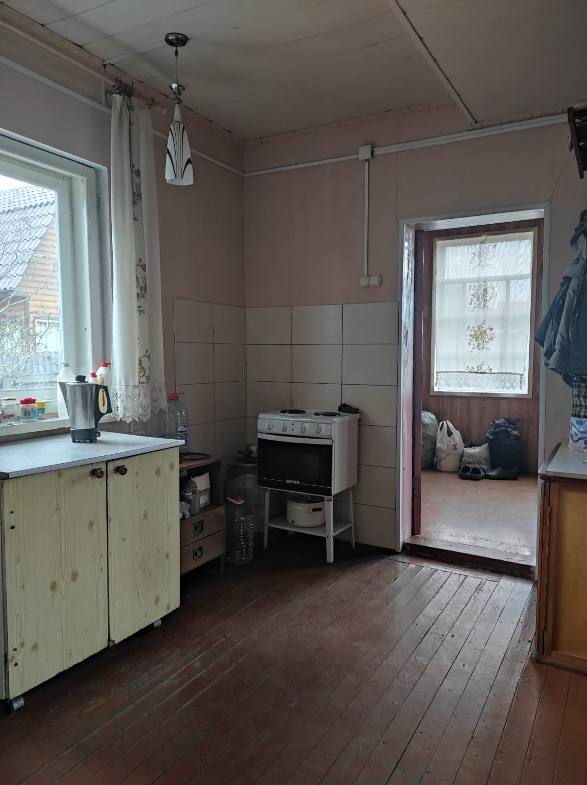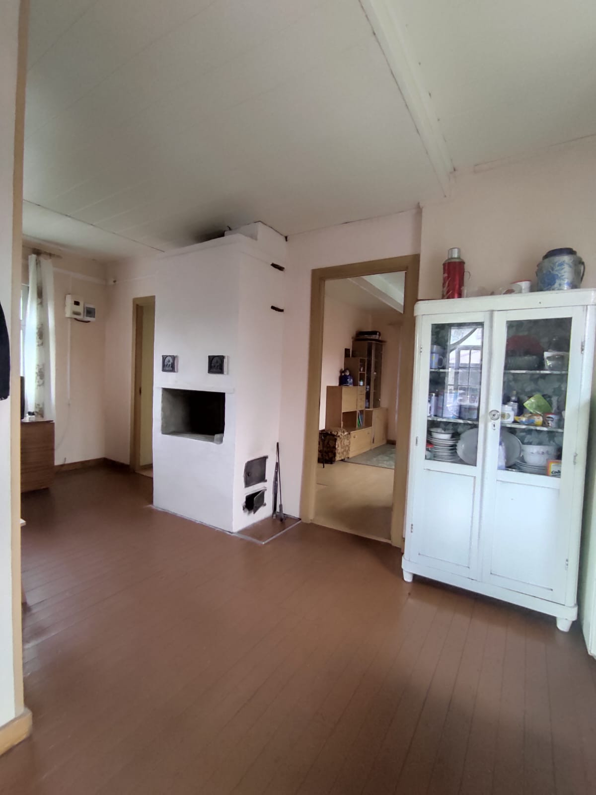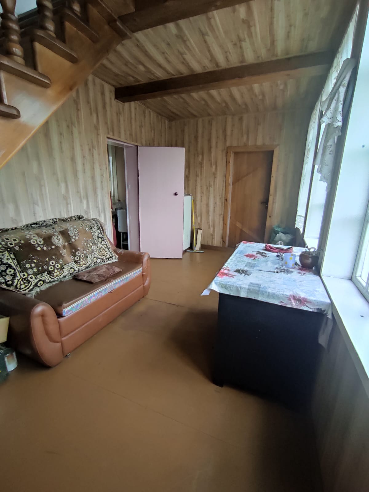 Двойные рамы, стены ровные, окрашенные, электрика новая, двери из массива. На первом этаже: веранда, кухня-гостиная, две раздельные спальни, второй этаж без отделки (комната и холл). Общая площадь дома под 70,8 м ². Подключено электричество.