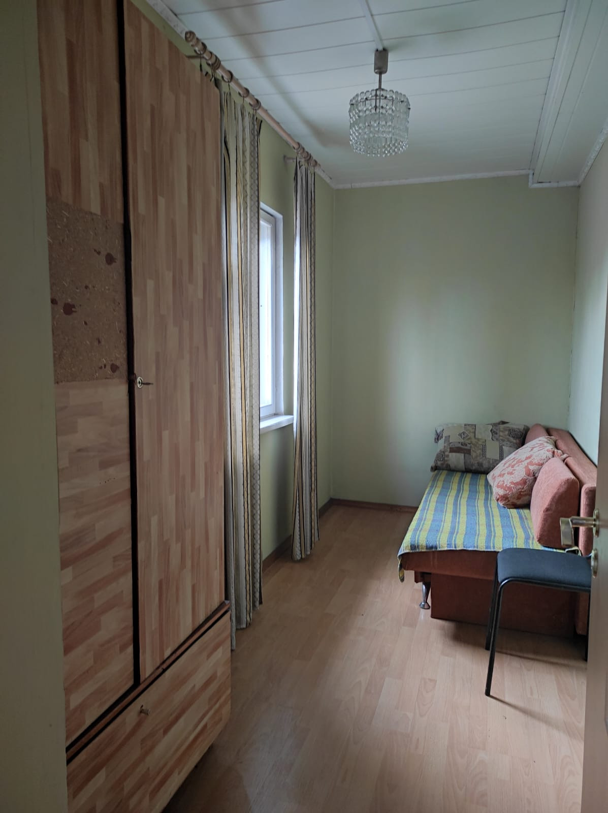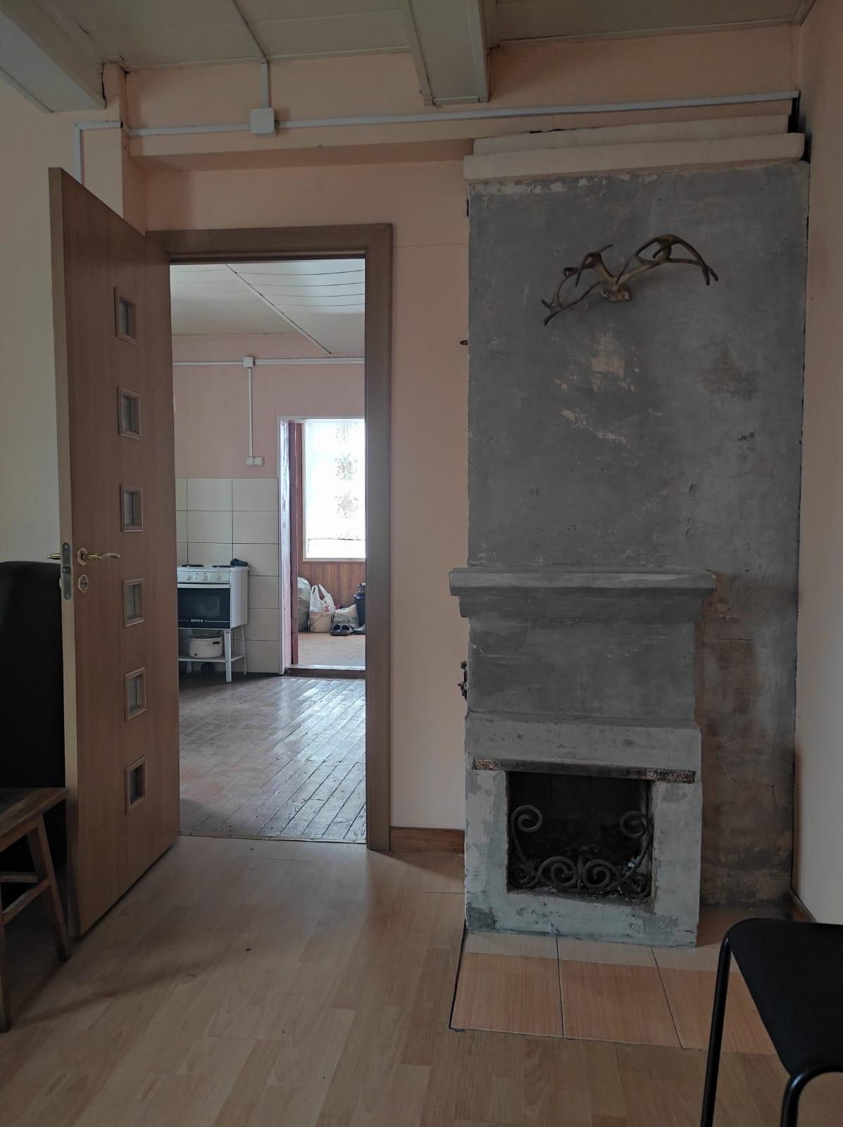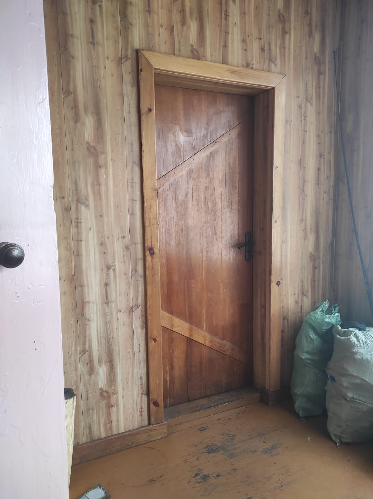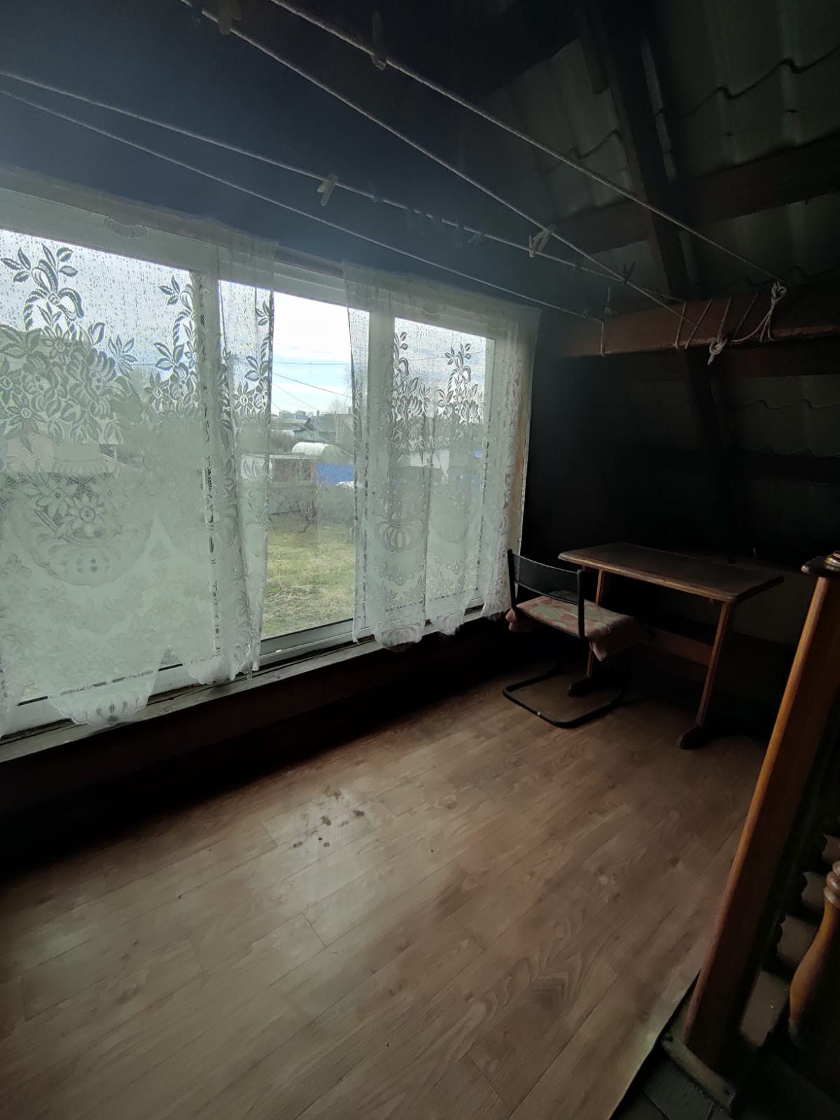 Двойные рамы, стены ровные, окрашенные, электрика новая, двери из массива. На первом этаже: веранда, кухня-гостиная, две раздельные спальни, второй этаж без отделки (комната и холл). Общая площадь дома под 70,8 м ². Подключено электричество.