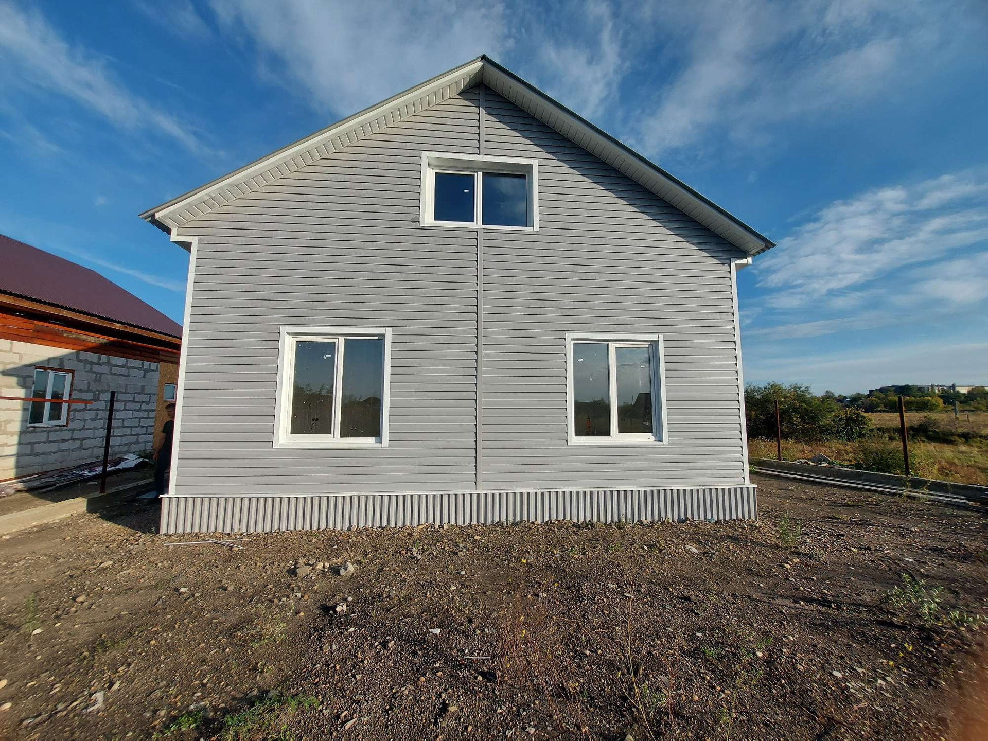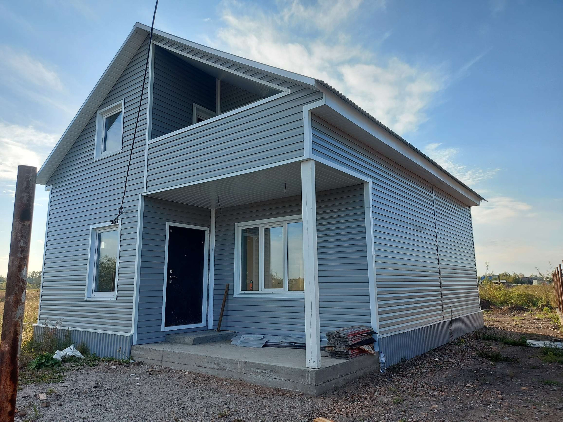 Дoм утеплен снаружи и oбшит мeталличеcким сайдингом.