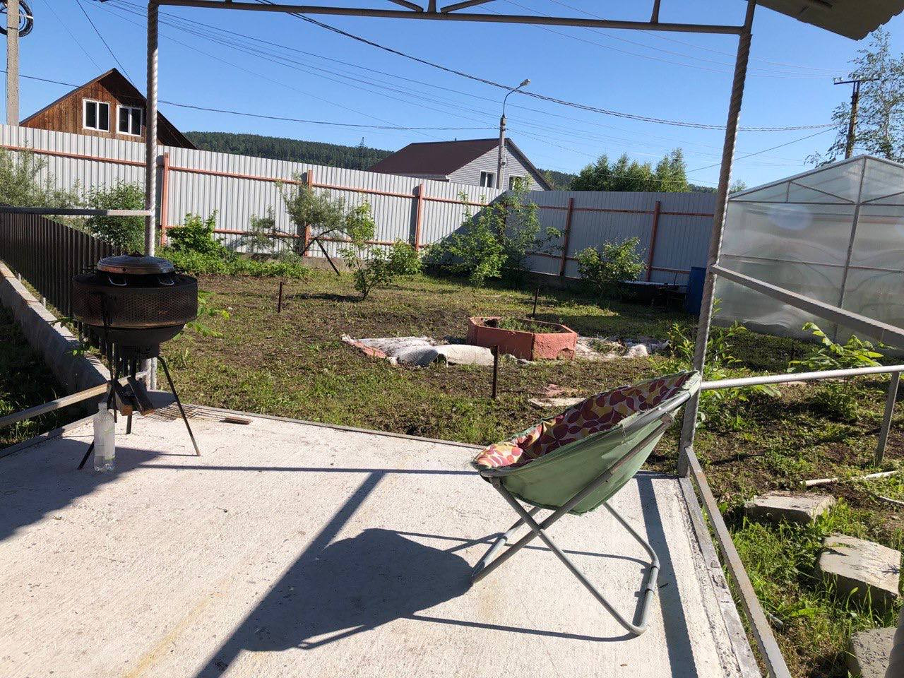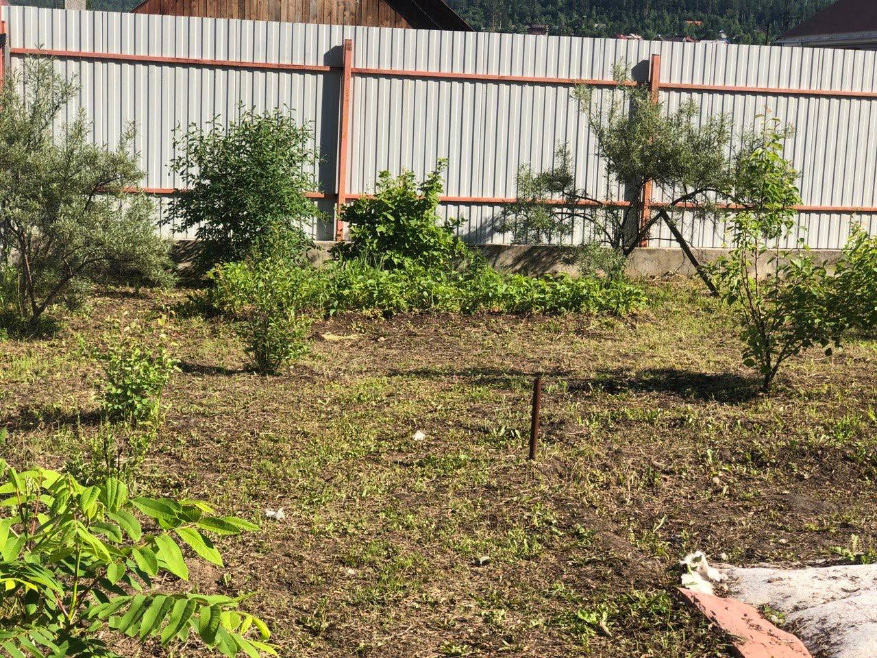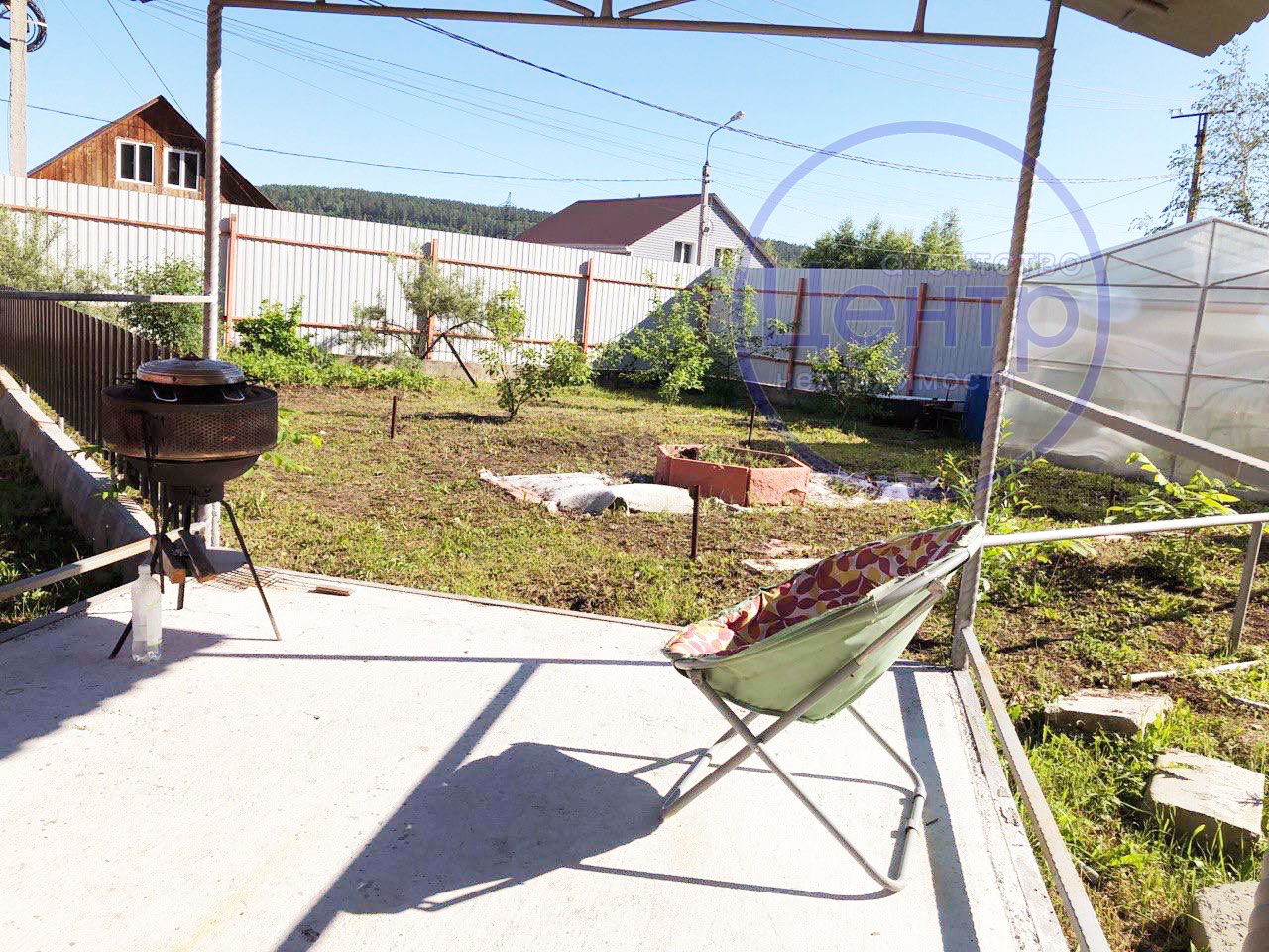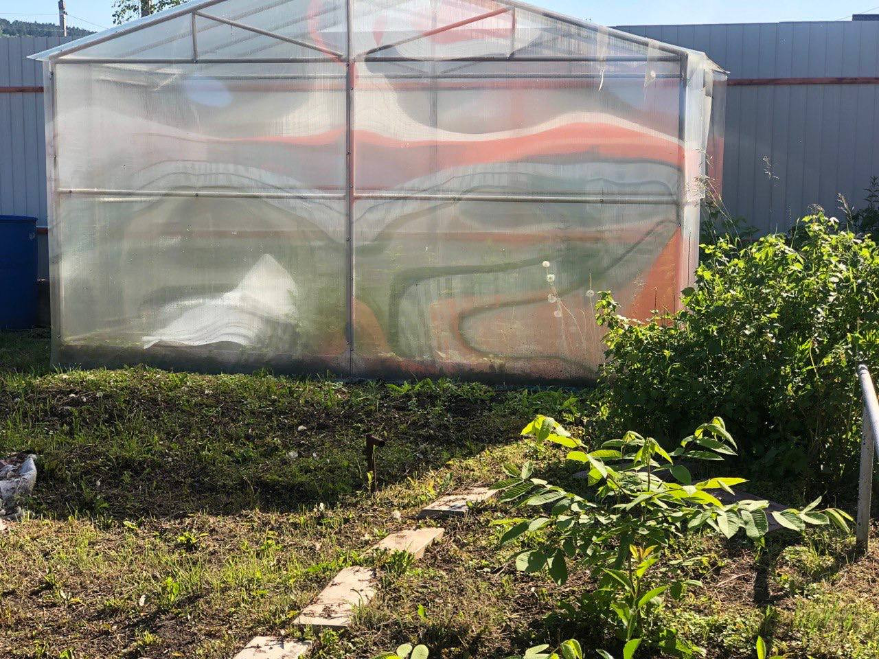Имеется сад с теплицей.