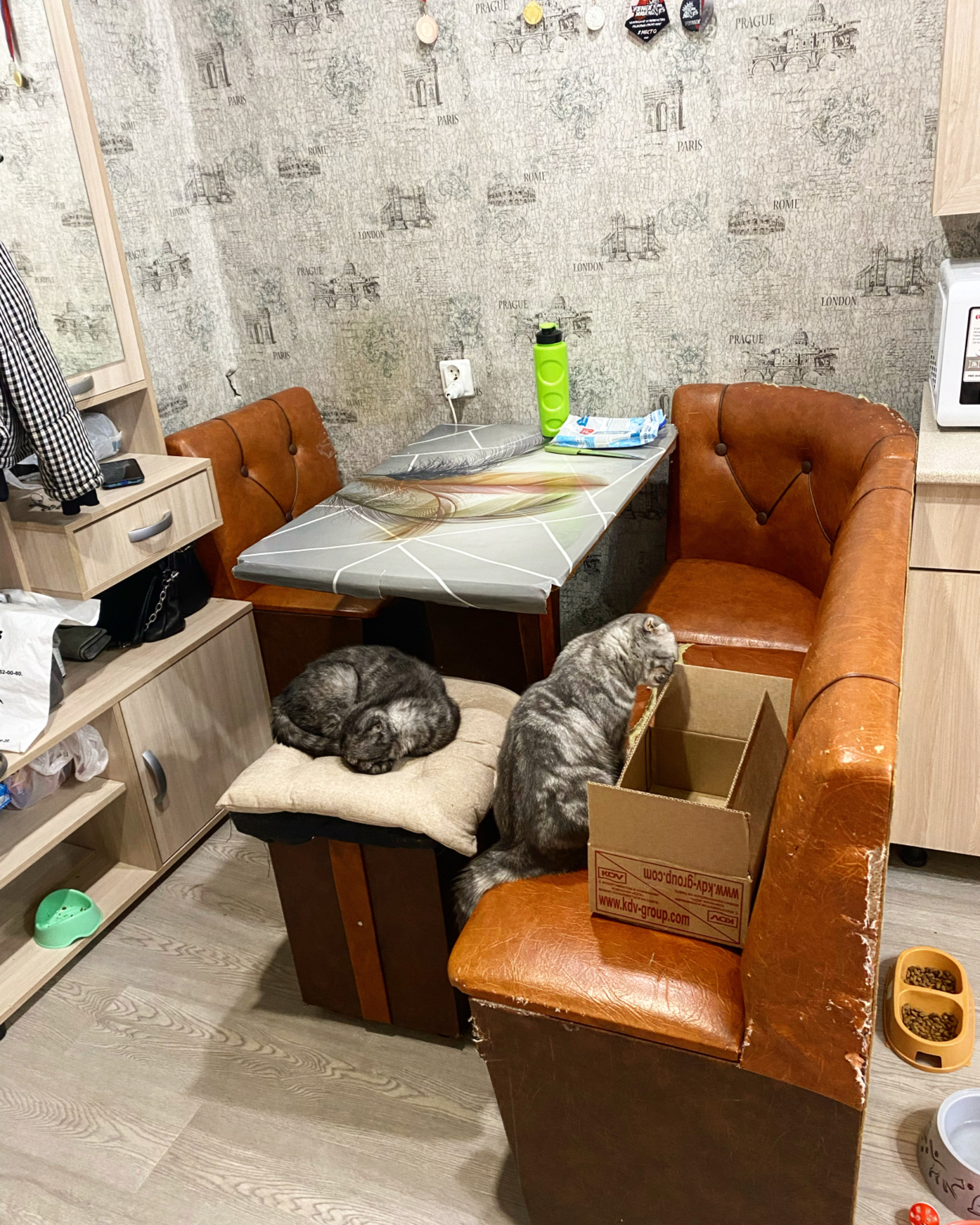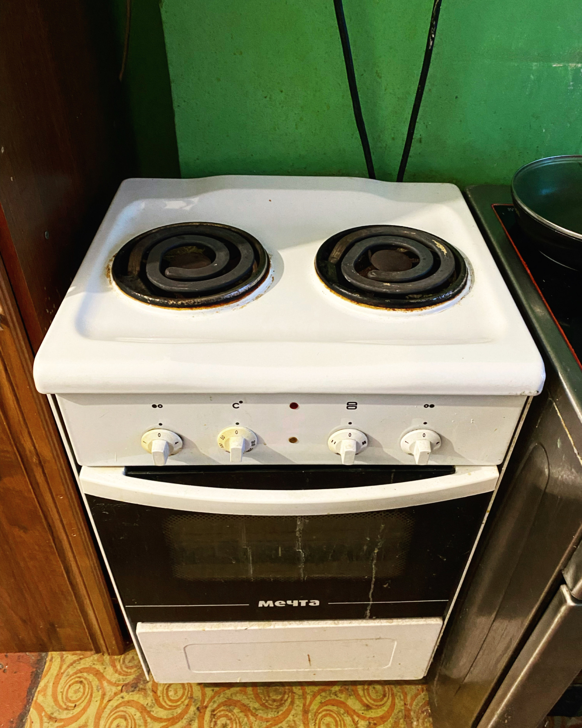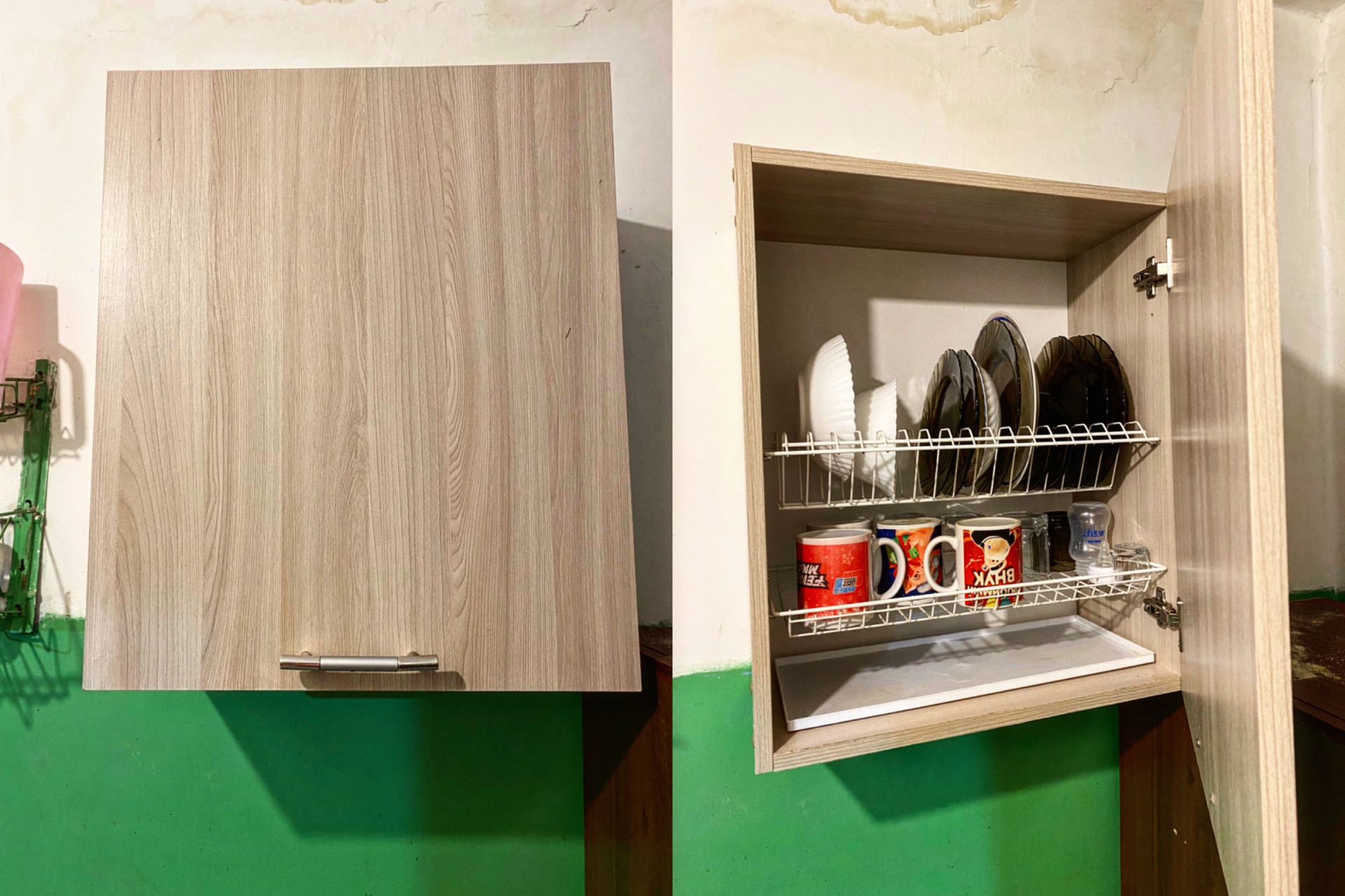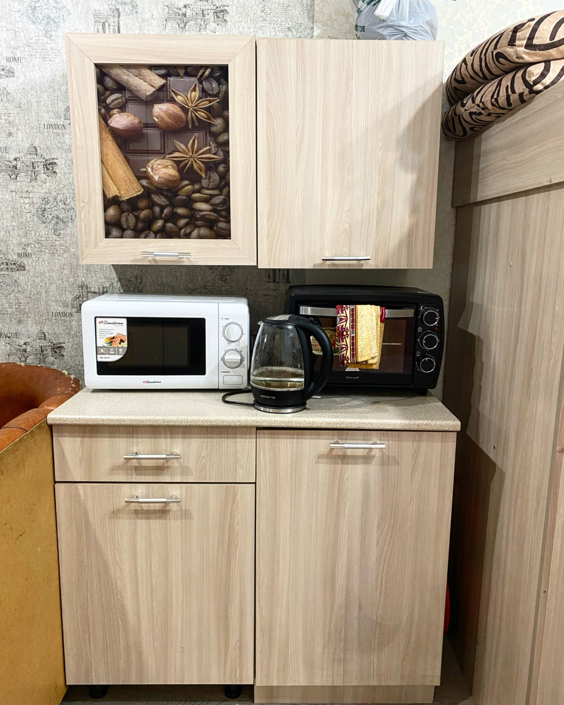 На кухне свое место (есть сушилка для посуды, плитка, стол)