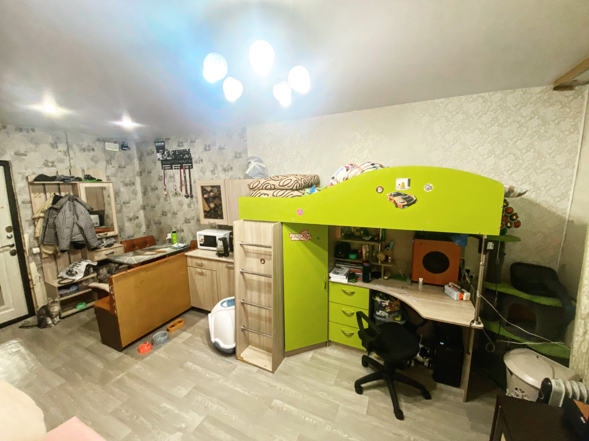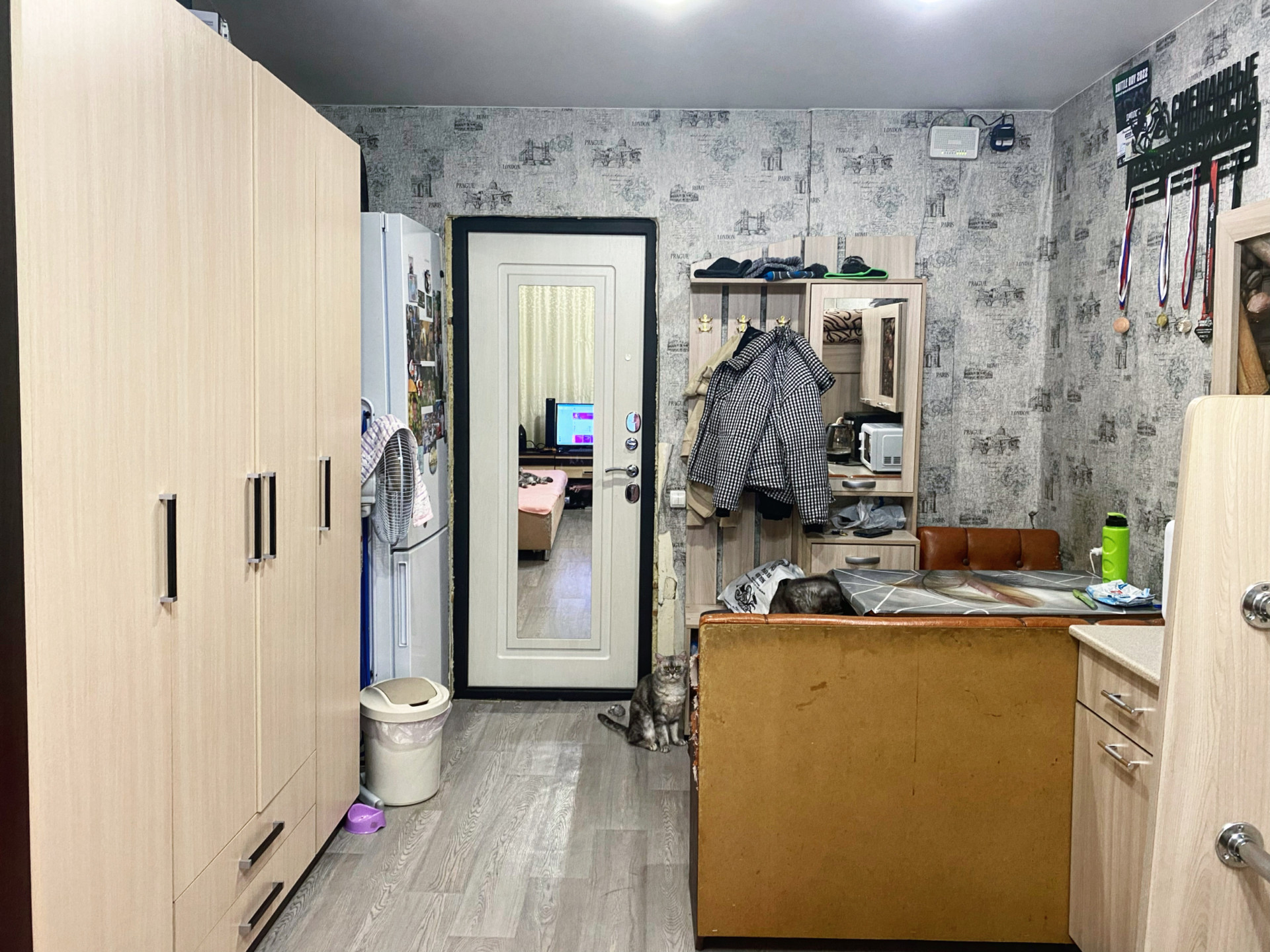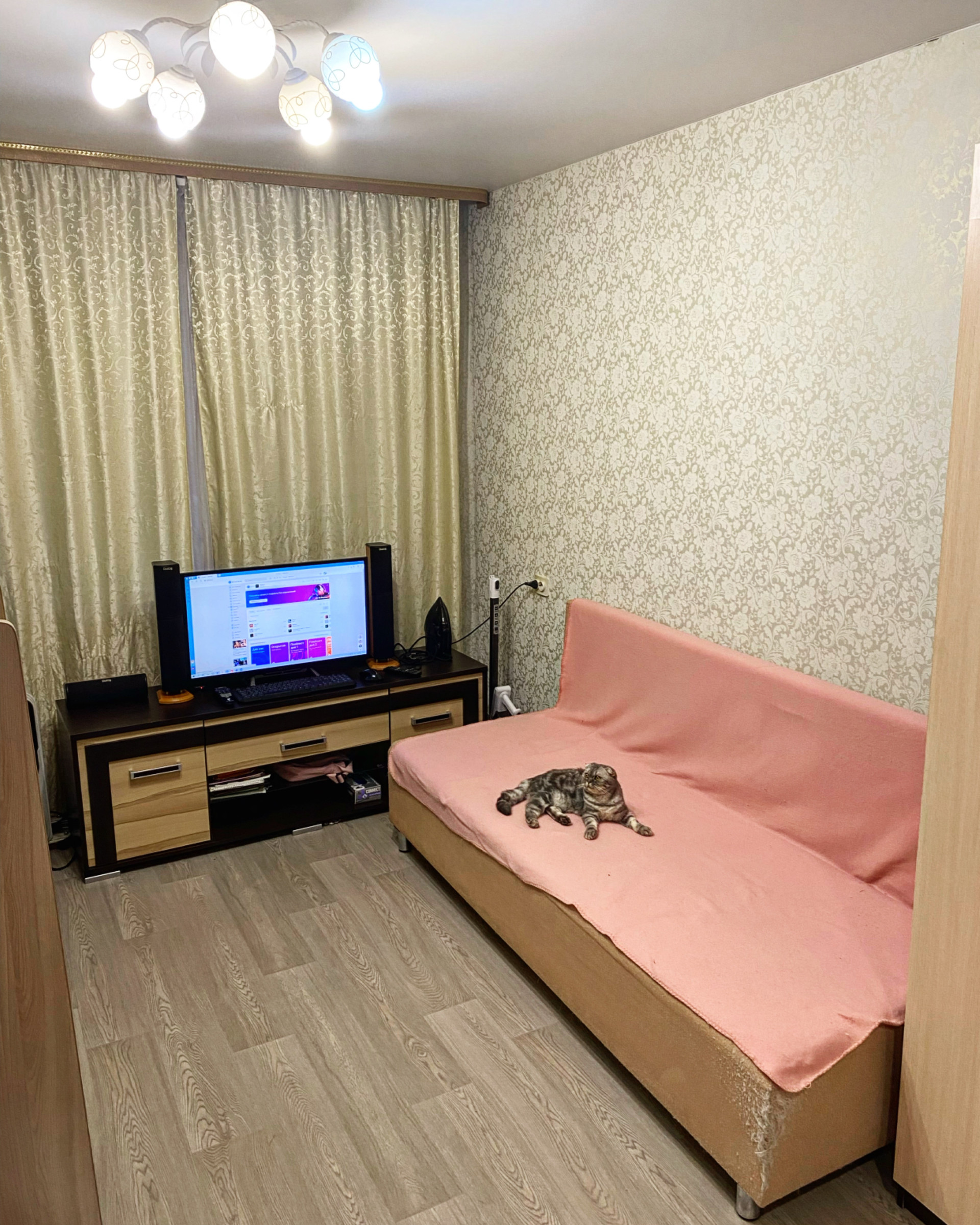 В комнате хороший ремонт️ Натяжной потолок, окна ПВХ, балкон застеклен, надежная входная дверь с зеркалом