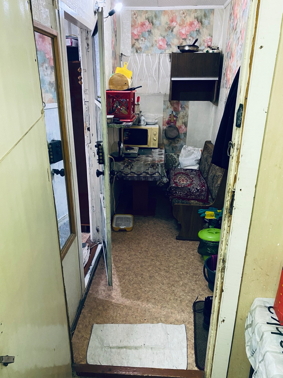 Фото коридора и туалета сделаны  со вспышкой, по этому так темно.