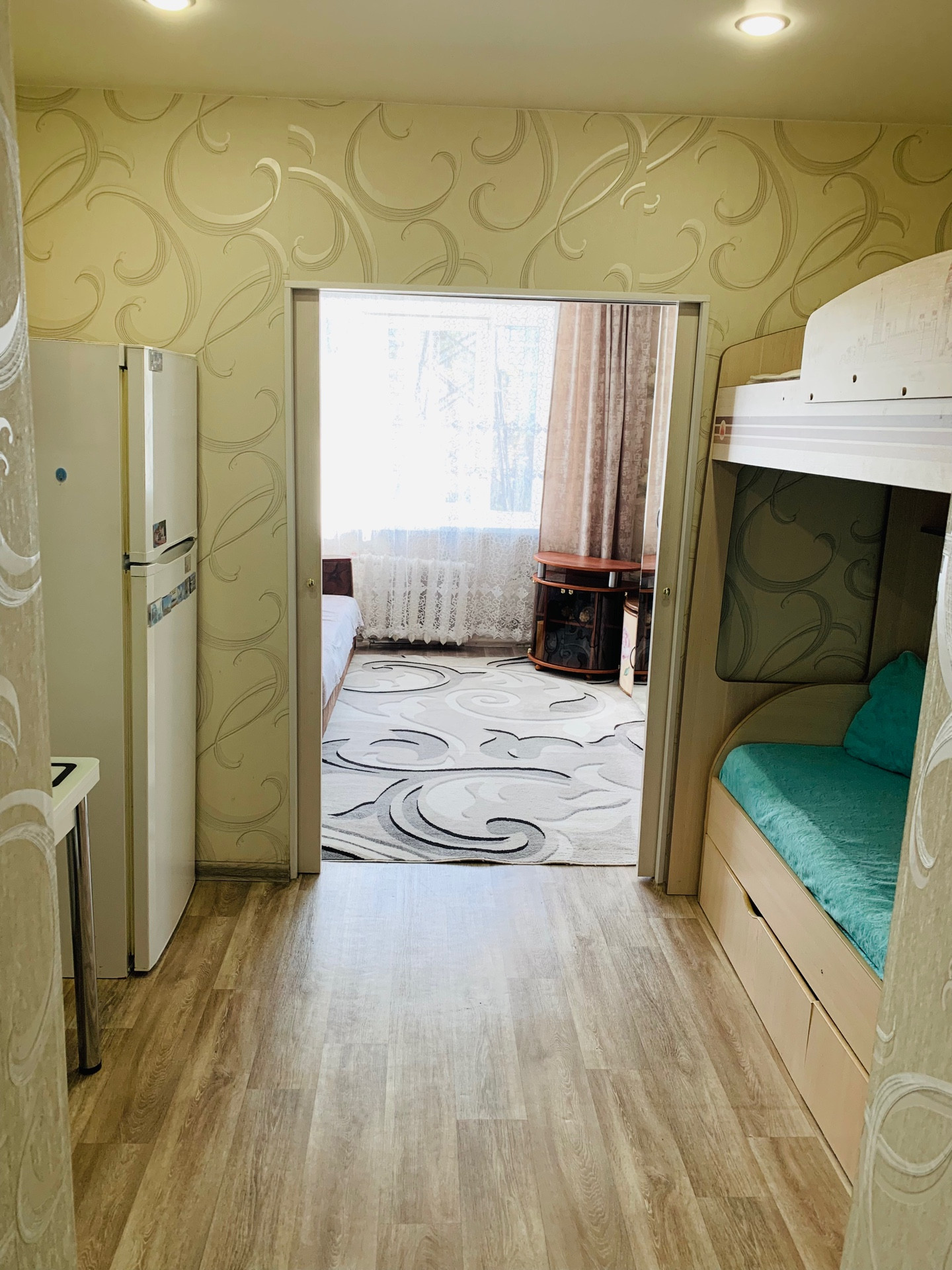 Окна ПВХ, на полу линолеум, натяжные потолки, частично по договоренности в комнате останется мебель. Общий, чистый, раздельный сан.узел, общая кухня, отдельная хорошая плита на две семьи, отдельная стиральная машина останется вам БОНУСОМ! В ванной комнате недавно сделан ремонт, установленные счетчики. Комната очень теплая, не угловая. Металлическая входная дверь в комнату и секцию. Ремонт делался для себя не жалея средств и времени, при просмотре убедитесь в этом сами! Огромный плюс, комната разделена на 2 части (на фото видно).