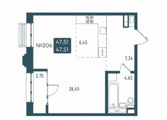 Продажа однокомнатной квартиры, 47.5 м2