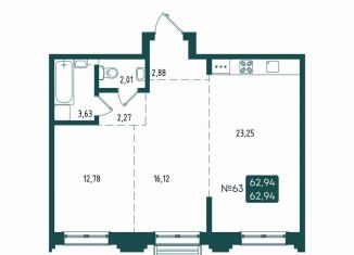 Общая площадь: 62.9 м2