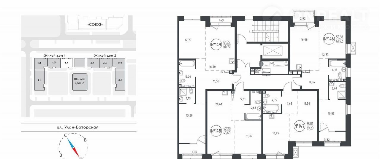 ЖИЛЫХ КВАРТАЛАХ СОЮЗ РRIОRIТY представлено более 20 планировочных решений площадью от 27 до 115 кв.м для разных сценариев жизни.