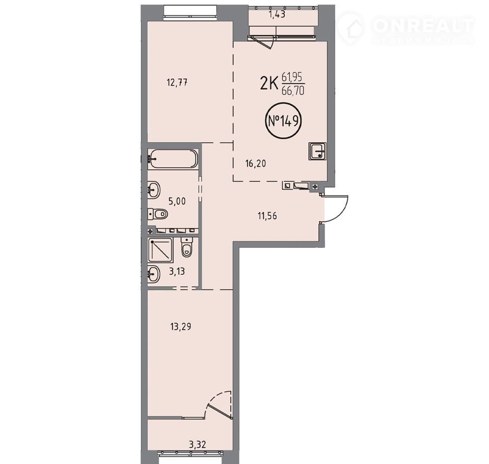 Общая площадь 66.7 м2