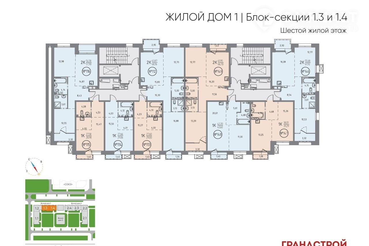 ЖИЛЫХ КВАРТАЛАХ СОЮЗ РRIОRIТY представлено более 20 планировочных решений площадью от 27 до 115 кв.м для разных сценариев жизни.