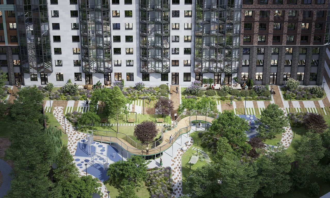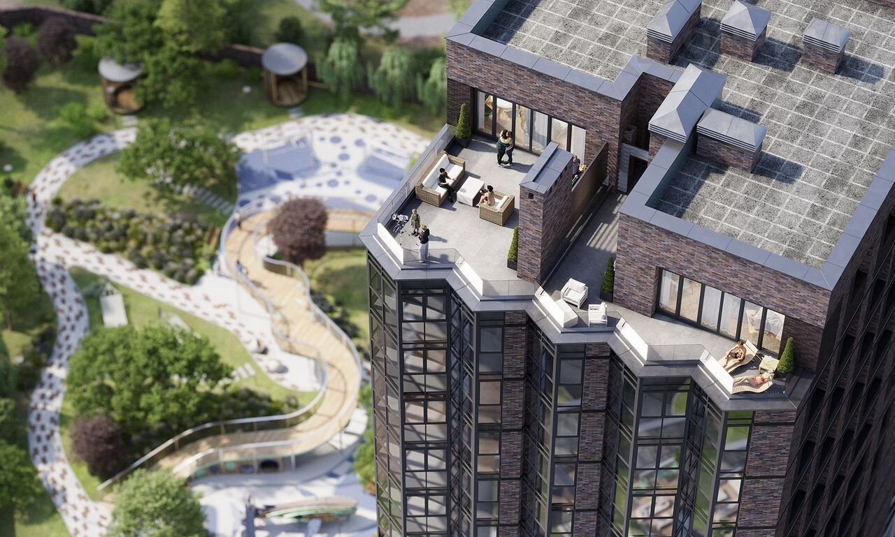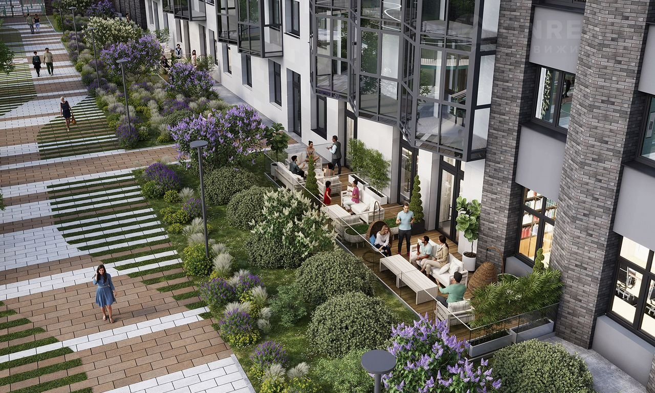 Приватная территория комплекса разделена на две уютные локации. Первая - бизнес-гарден, это внутренний двор, напоминающий сад. Это место станет для вас местом силы и спокойной работы. Вторая локация – это резорт, место активного отдыха и общения с соседями. Здесь расположен амфитеатр, а фонтан станет спасением в жаркий летний день.