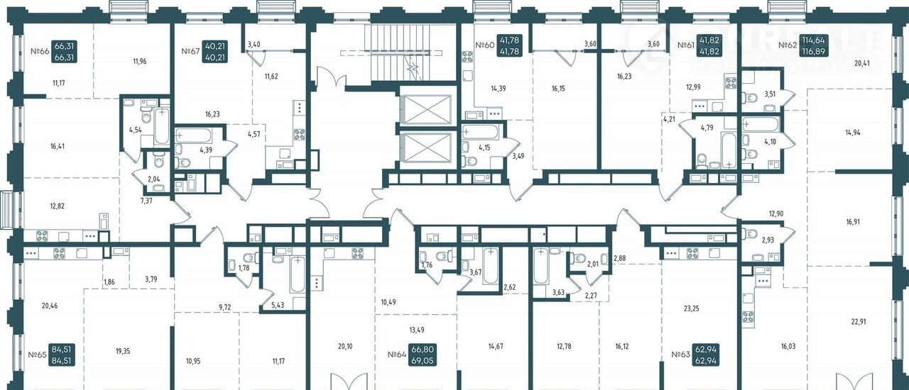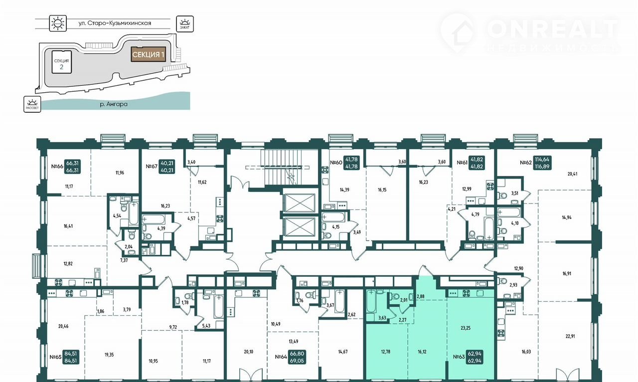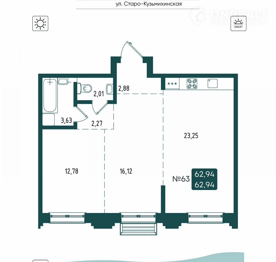 Общая площадь 62.9 м2