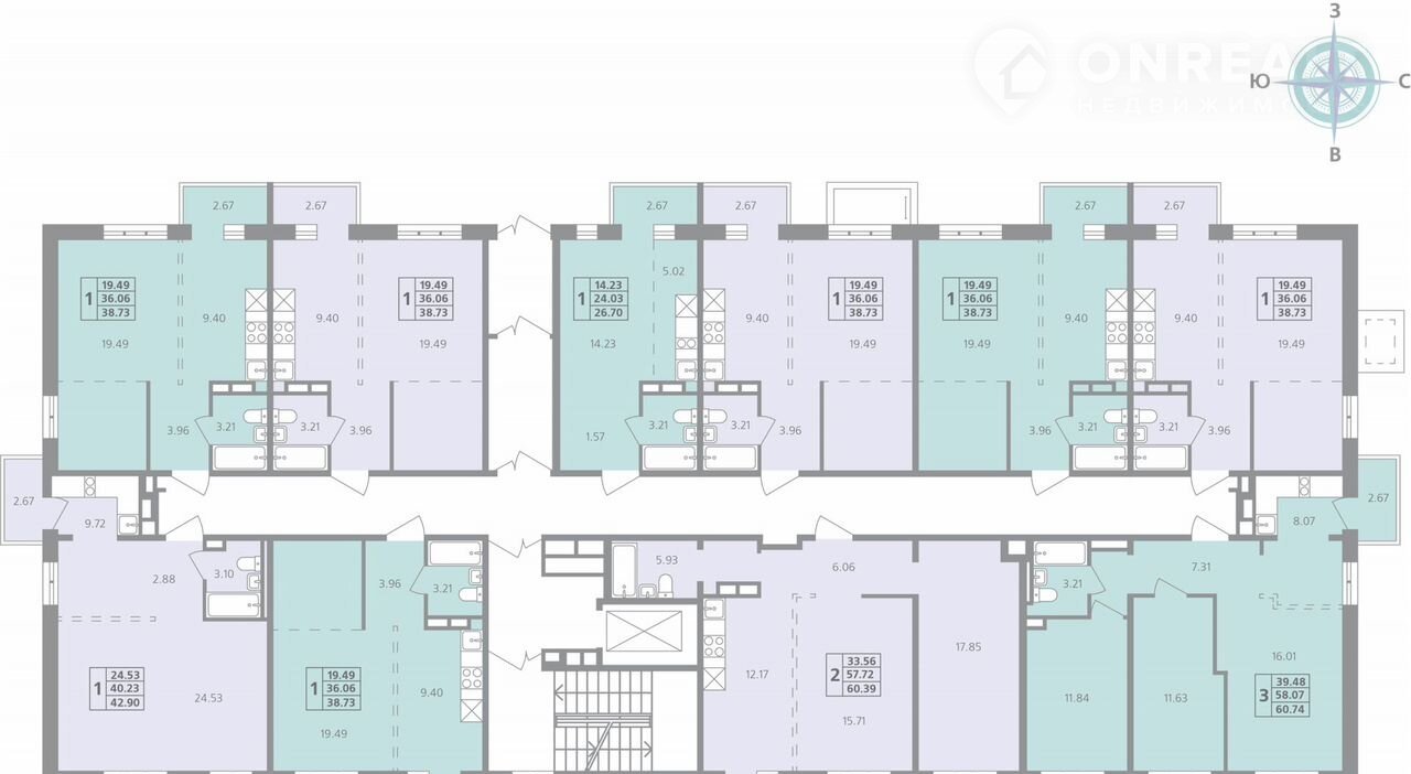 Лот: 3 этаж, площадь — 62,4 м²