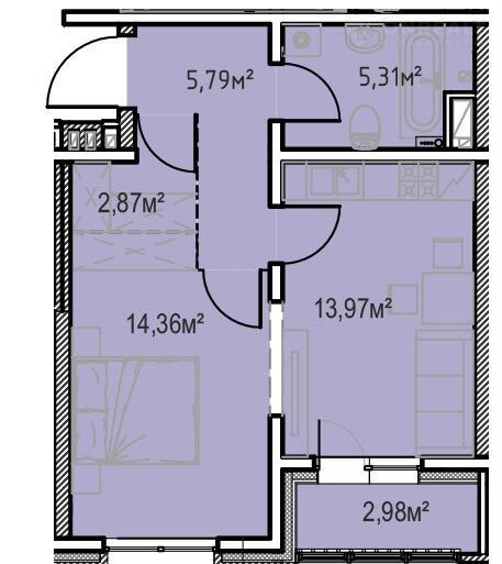 Общая площадь 45.3 м2