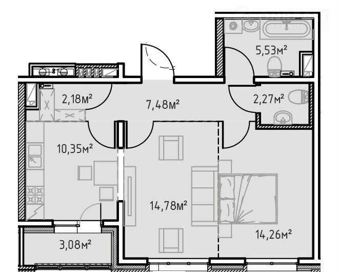 Общая площадь 59.9 м2