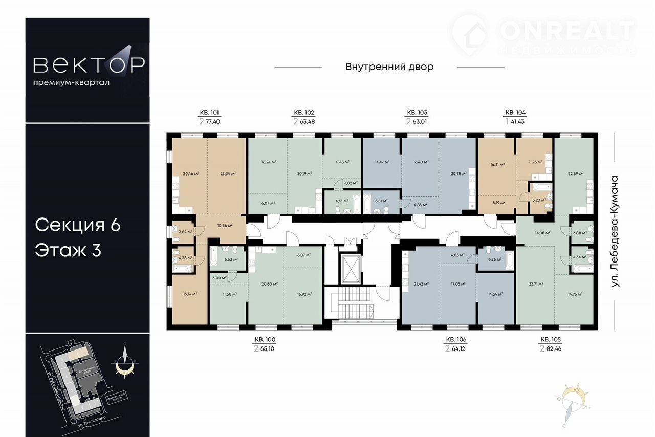 Общая площадь 64.1 м2
