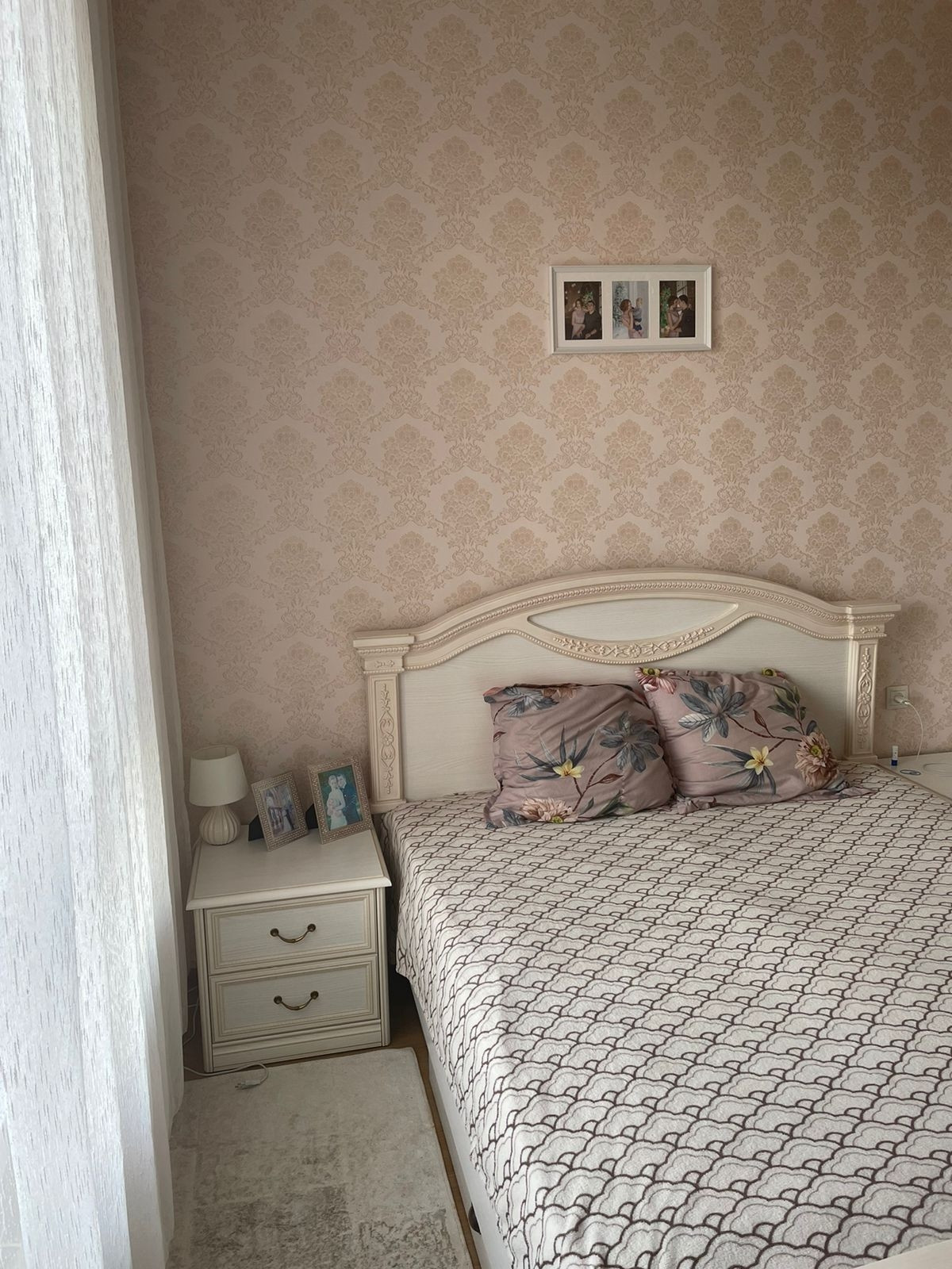Стены: ровные стены, покрыты обоями. Все в приятных светлых тонах.