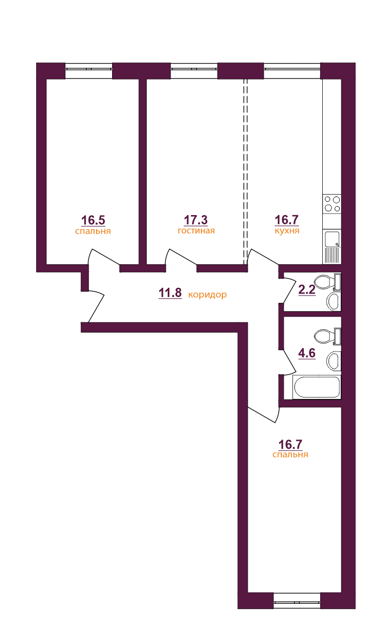 Количество комнат 3