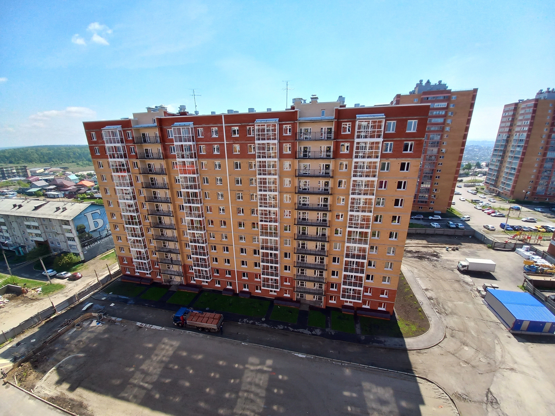 Жилой комплекс расположился в 10 минутах от исторического и культурного центра города. С 2го этажа открывается потрясающий вид на Ангару