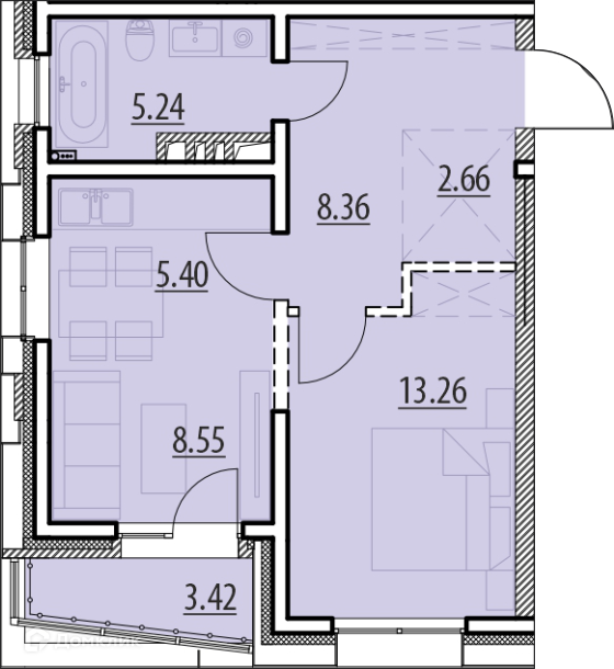 Продается евро-двухкомнатная квартира в современном жилом комплексе ZENITH. Передача ключей уже в начале 2023 года. Подходит под семейную ипотеку (ставка от 5,7%)