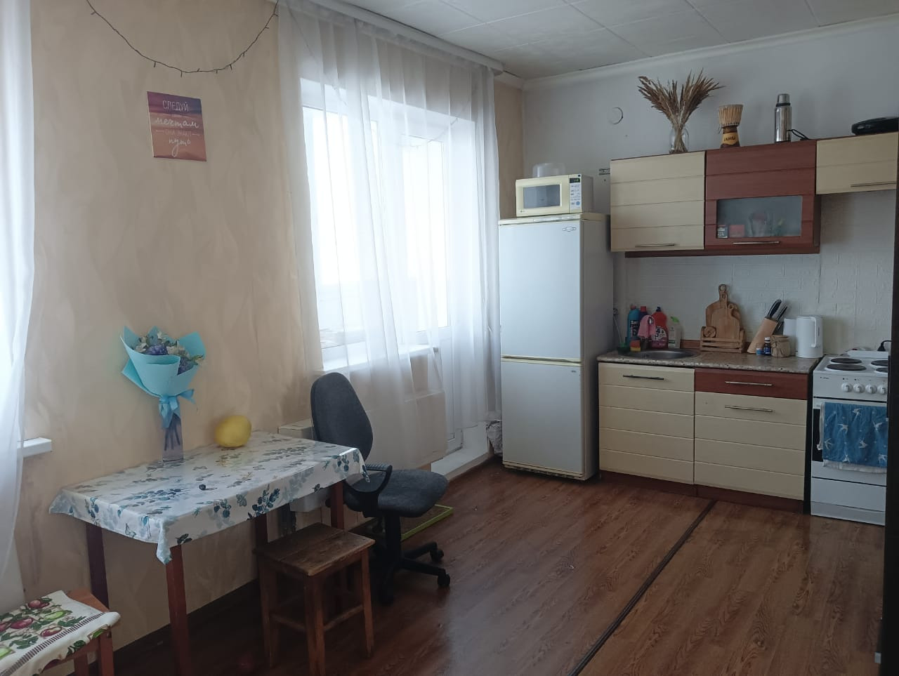 В квартире ремонт, очень большая Лоджия. Остаётся вся мебель в квартире. Один Собственник более 5-ти лет.