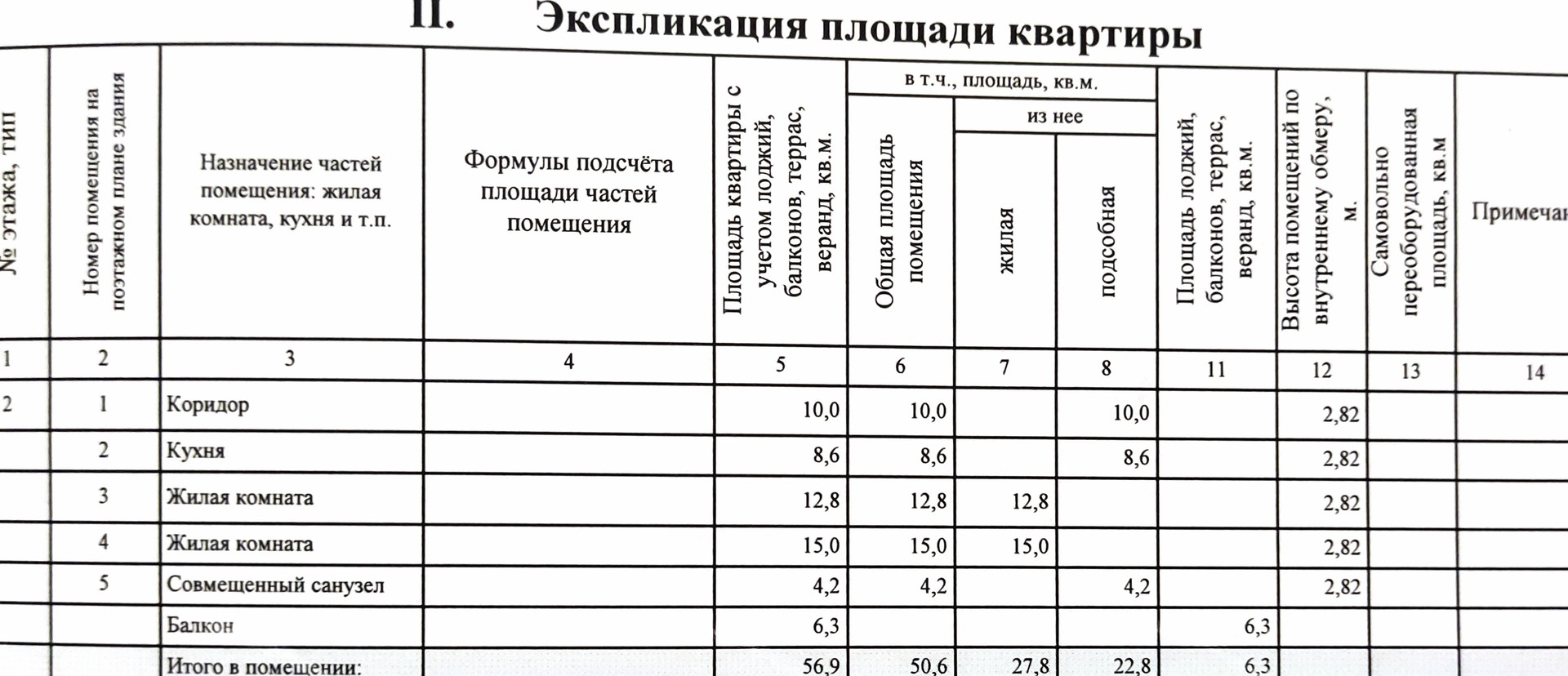 Общая площадь 56.9 м2
