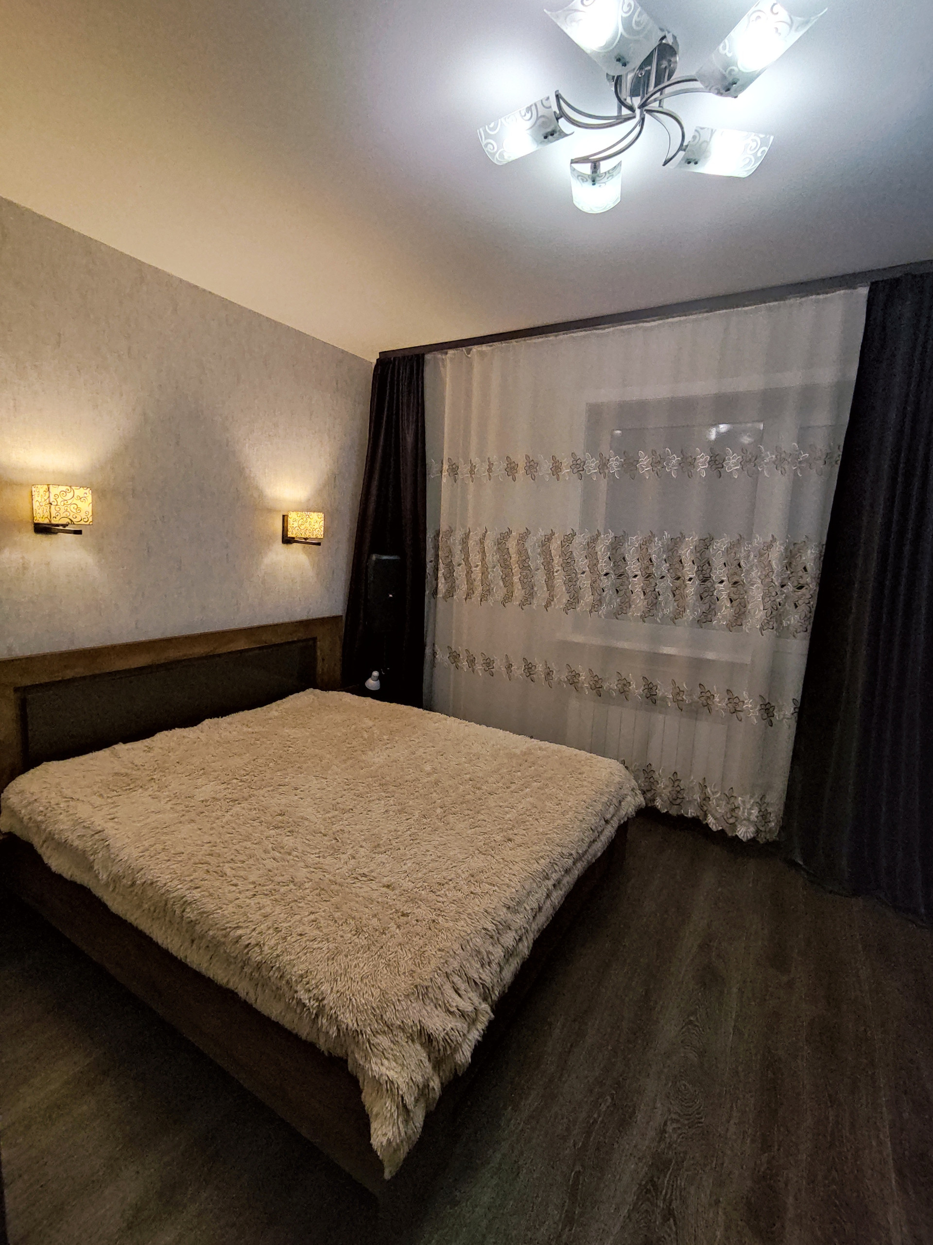 Все поверхности в квартире были выведены в геометрически ровную плоскость. Потолки оставлены высокими - 290см - не натяжные. Стены оклеены обоями. Полы устроены фанерой, теплые по всей площади, покрыты линолеумом. В том числе и на лоджии.