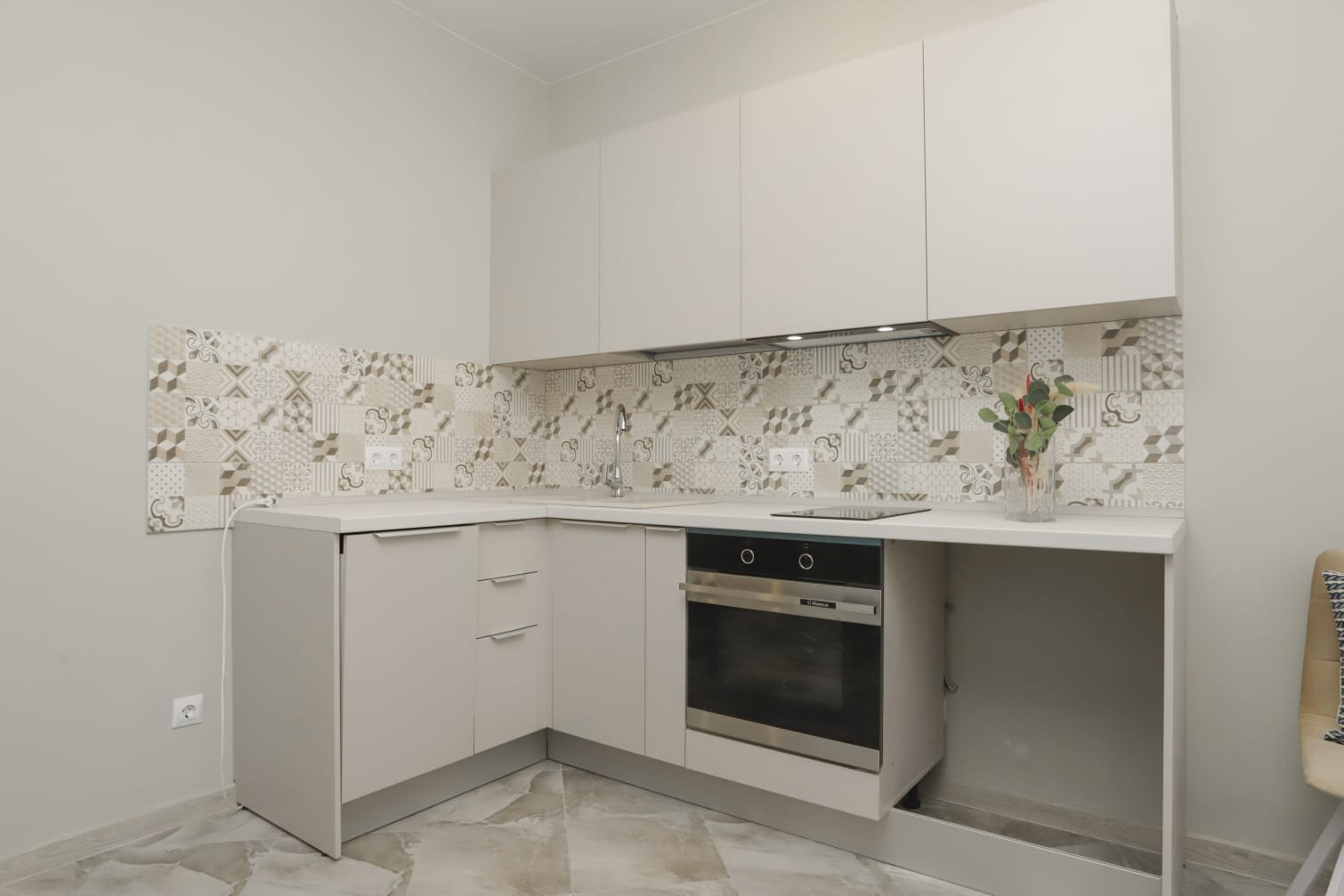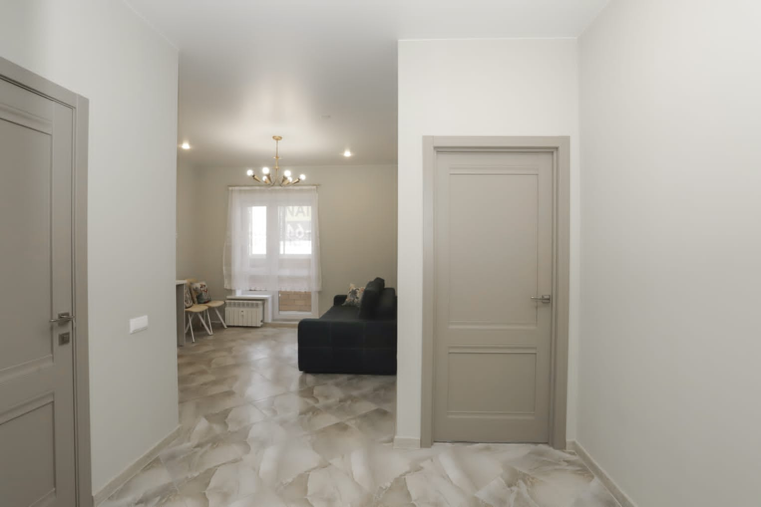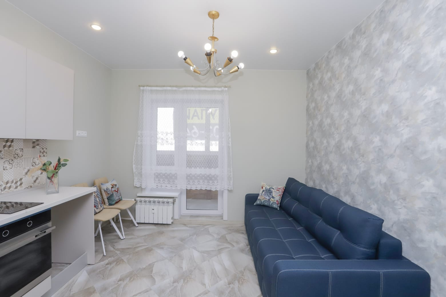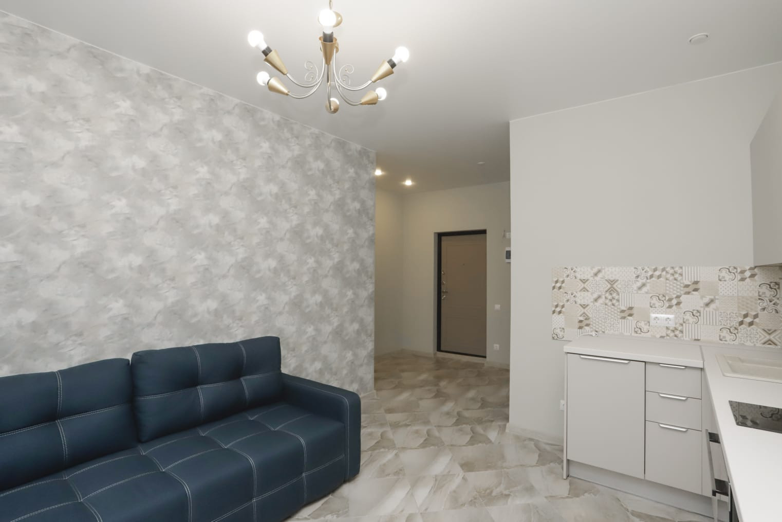 Планировка: кухня-гостиная -15 кв, спальня-12,3 кв, с/у -4 кв, коридор -6 кв, гардеробная -4 кв